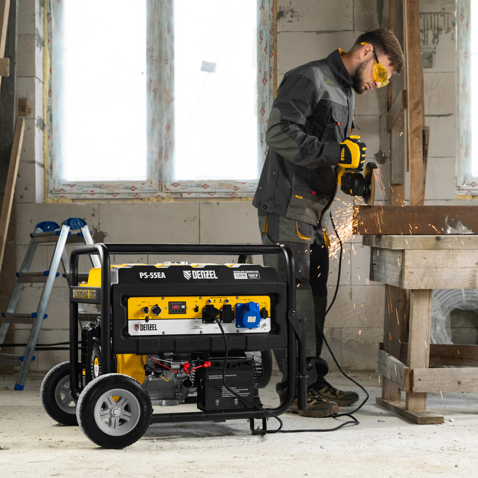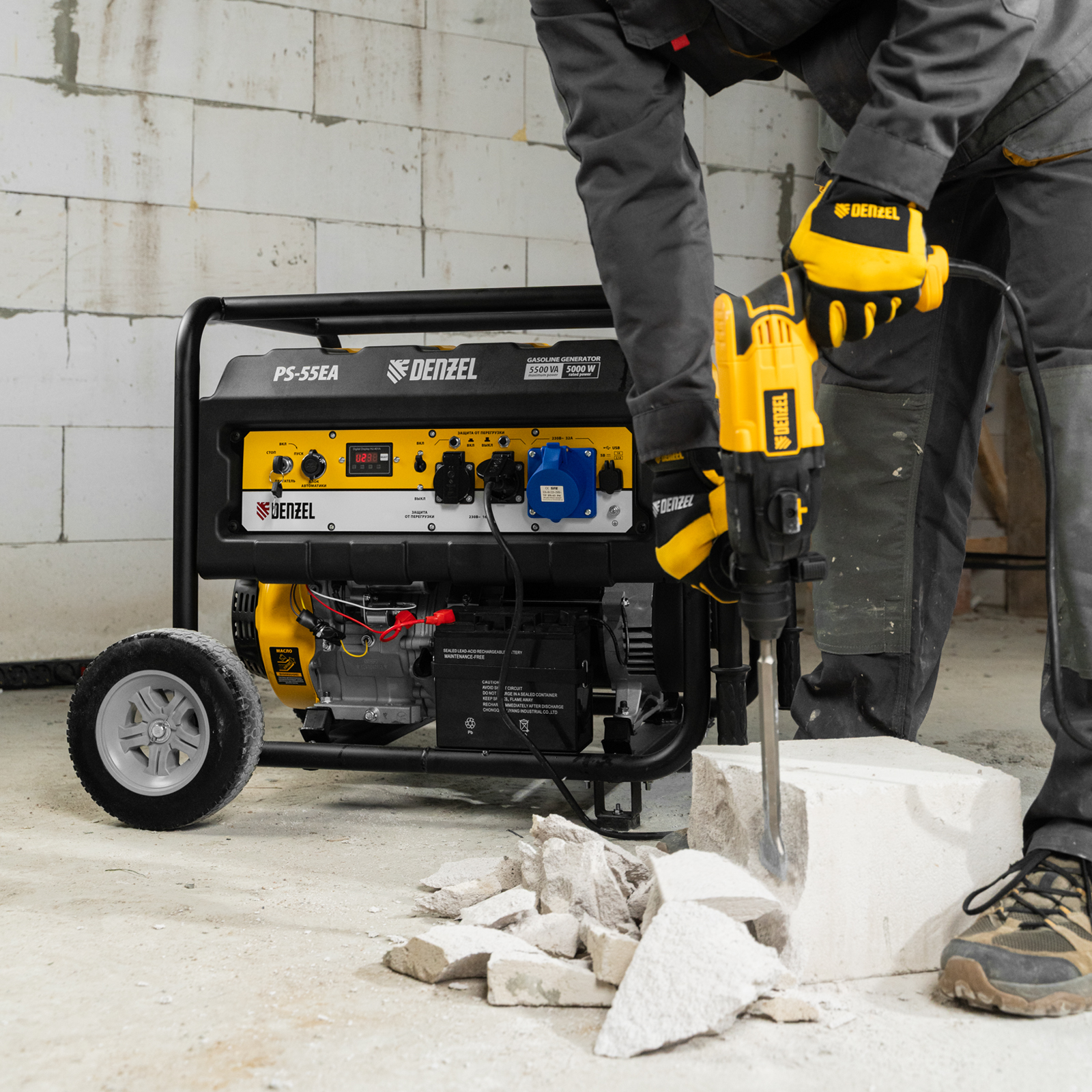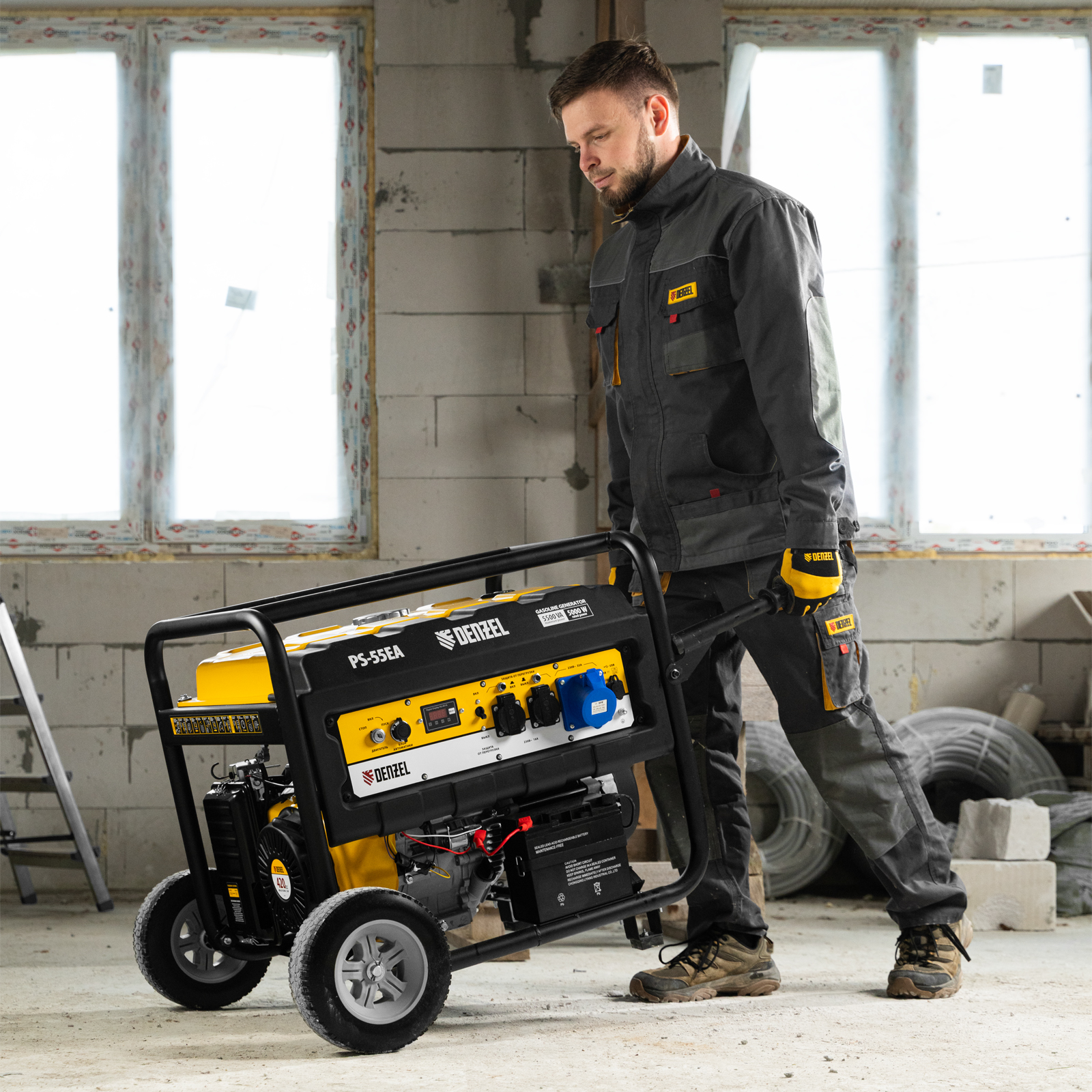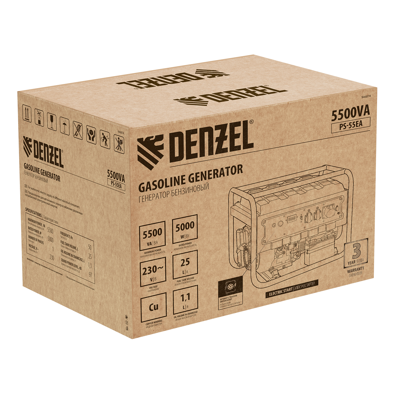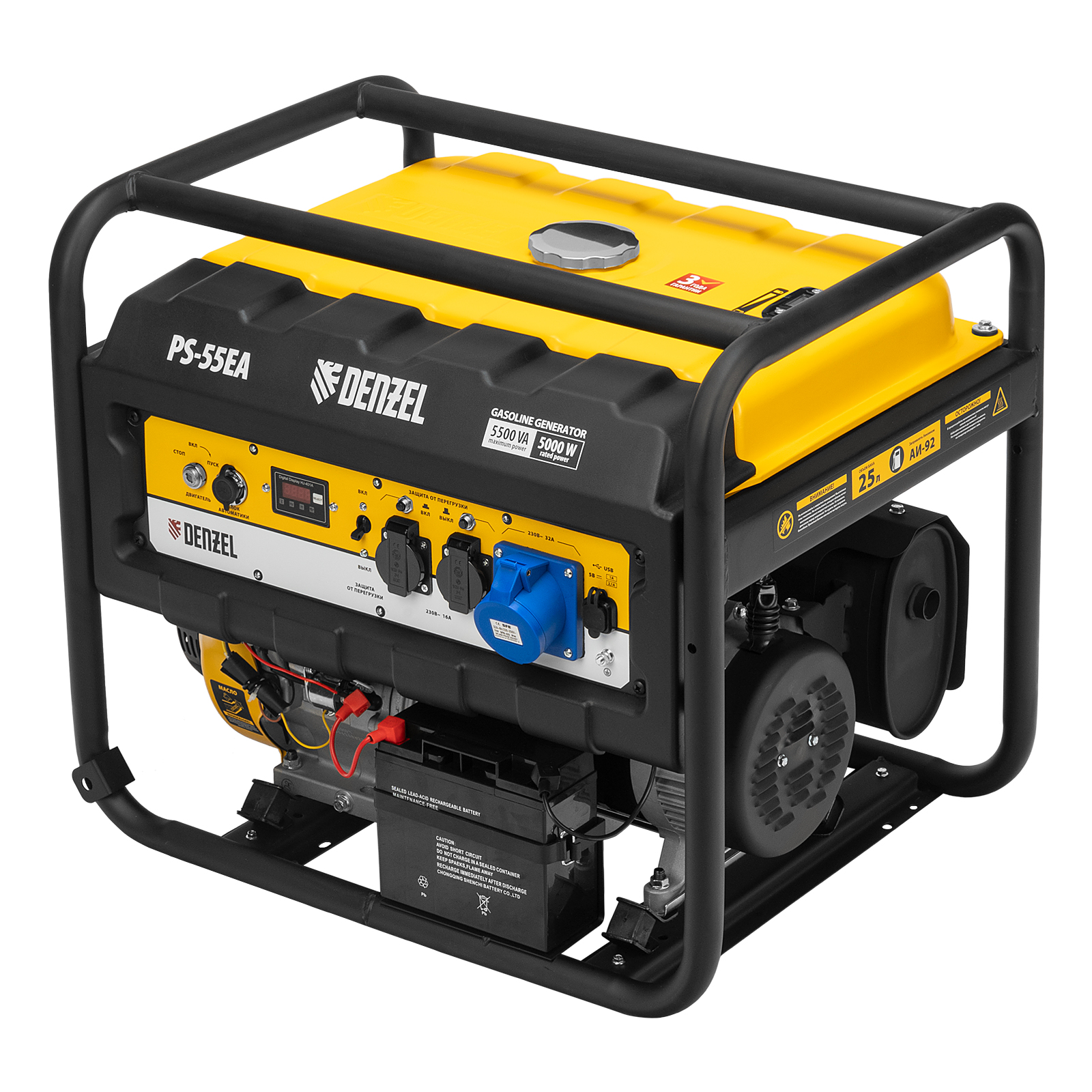 Генератор бензиновый PS 55 EA, 5.5 кВт, 230 В, 25 л, коннектор автоматики, электростартер Denzel в Челябинске