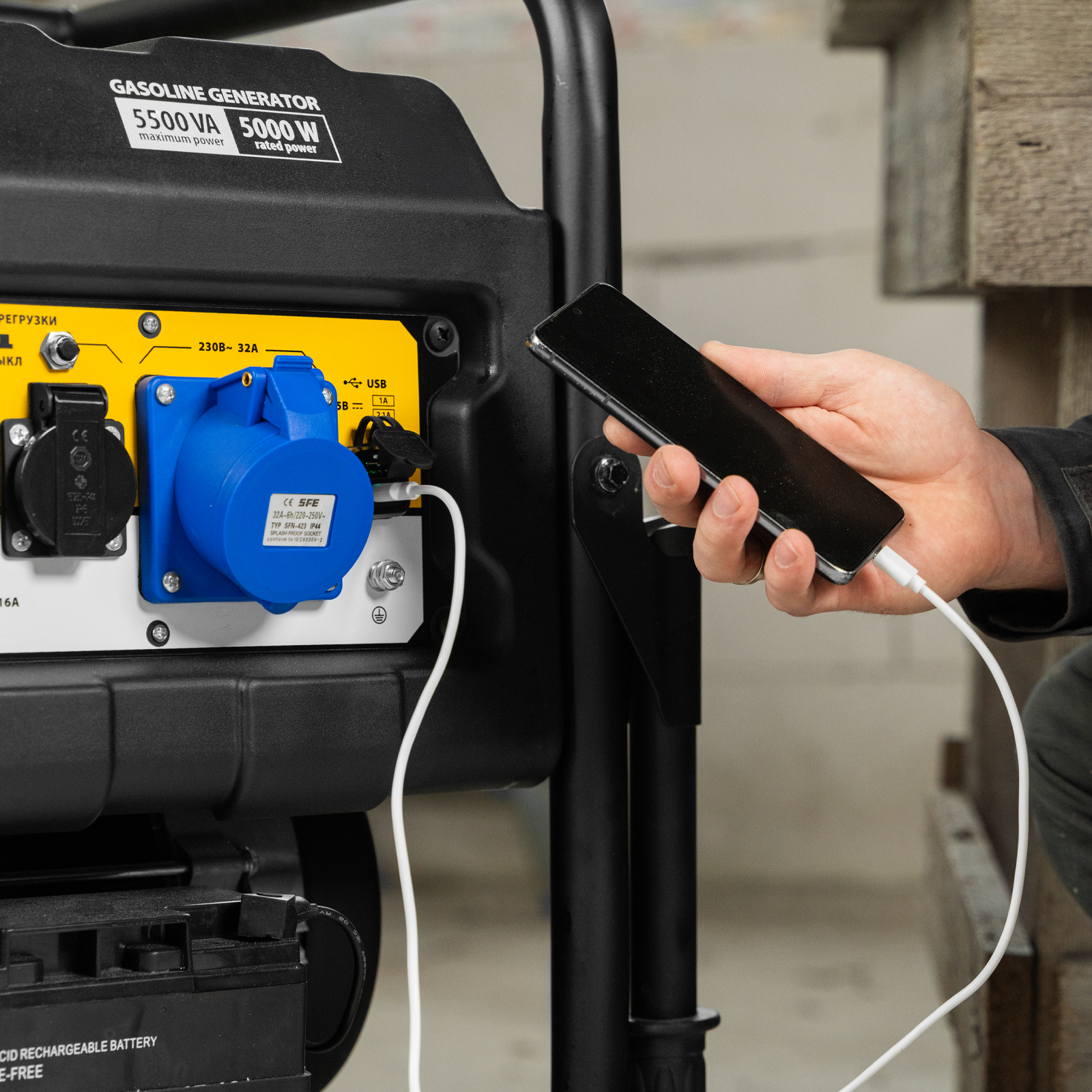- Прочная конструкция — усиленная рама (диаметр труб 32 мм) защищает генератор от повреждений.