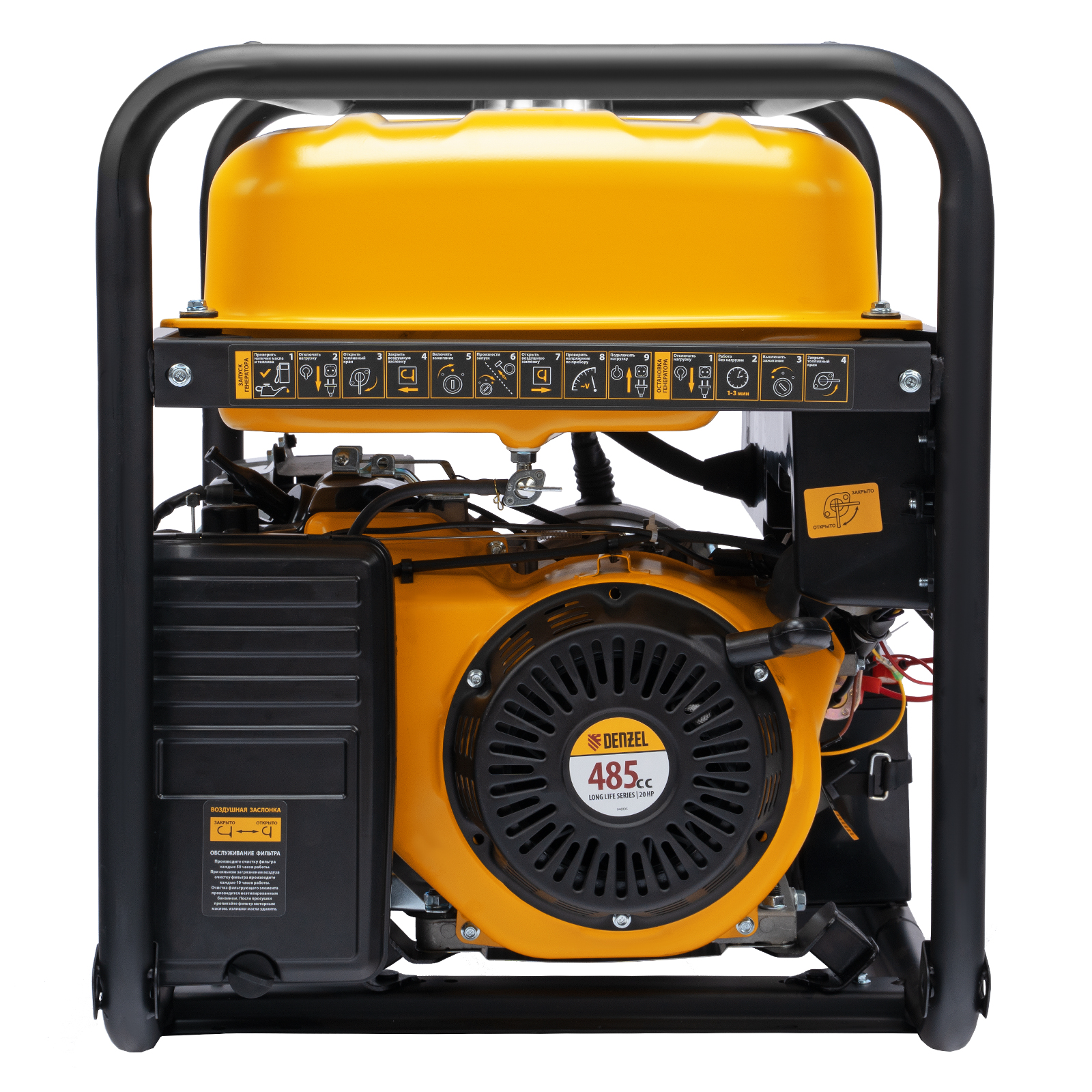 - Создание автономной системы резервного электроснабжения — производитель предусмотрел возможность подключения блока автоматики Denzel 946714 для самостоятельного запуска генератора в случае необходимости (приобретается отдельно).