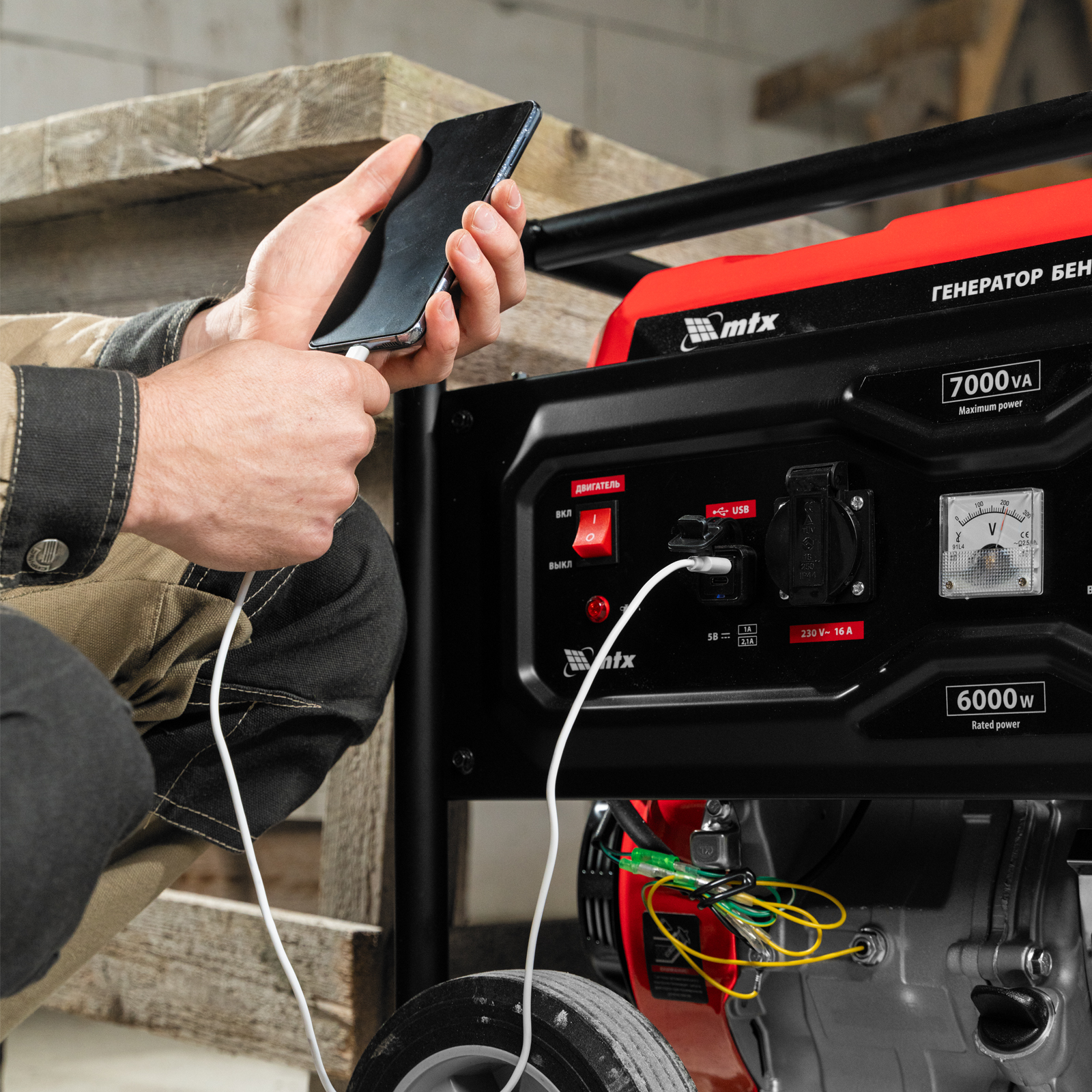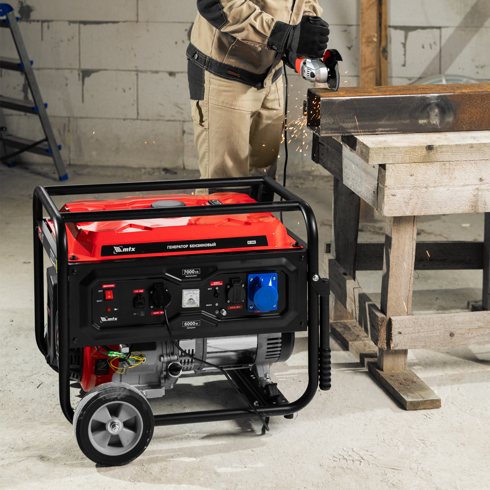 Бензиновый генератор MTX RS-9000 946155 максимальной мощностью 7 кВт, с ручным стартером, поддерживает напряжение 230 В и обеспечивает функционирование бытовой техники, электроинструмента, осветительных приборов и других потребителей в случае отсутствия электросети или перебоев в ее работе. Стабилизатор напряжения AVR защищает чувствительные приборы от поломки. Для подключения потребителей служат 2 розетки 230 В/16 А, для питания мощной техники предназначена силовая розетка 230 В/32 А. На панели управления также предусмотрен выход постоянного тока USB/TYPE-C 5 В, позволяющий заряжать смартфоны, планшеты и другие гаджеты. Генератор пригодится владельцам загородных участков.