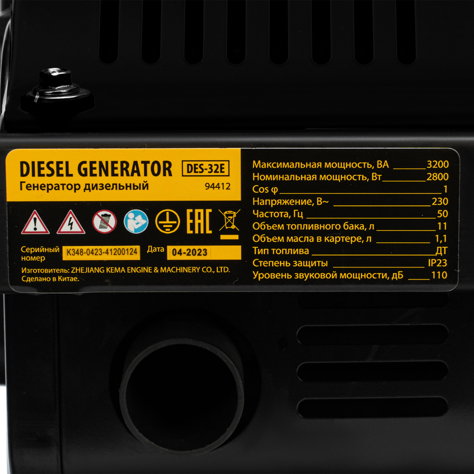 Генератор дизельный DES-32E, 3,2 кВт, 230 В, 11 л, электростартер Denzel в Челябинске