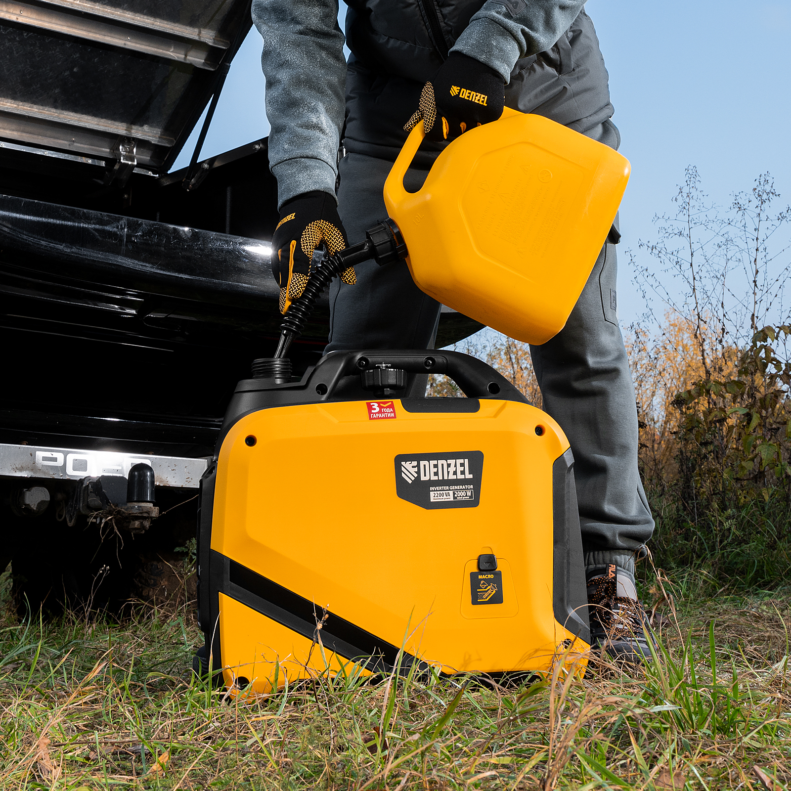 Инверторный генератор Denzel GS-2200iS 94713 максимальной мощностью 2,2 кВт, с ручным стартом, в закрытом корпусе, поддерживает напряжение 230 В и является автономным источником питания. Обеспечивает работу осветительных приборов, электроинструмента, бытовой техники в случае отсутствия подключения к электросети. Обеспечивает стабильный ток с неизменными параметрами и подходит для подключения высокоточной техники: компьютеров и т.д. Выход постоянного тока USB 5 В позволяет заряжать смартфоны, планшеты и другие гаджеты. Есть возможность зарядки автомобильных аккумуляторов — для этого предусмотрен выход 12 В. Генератор пригодится владельцам загородных домов.