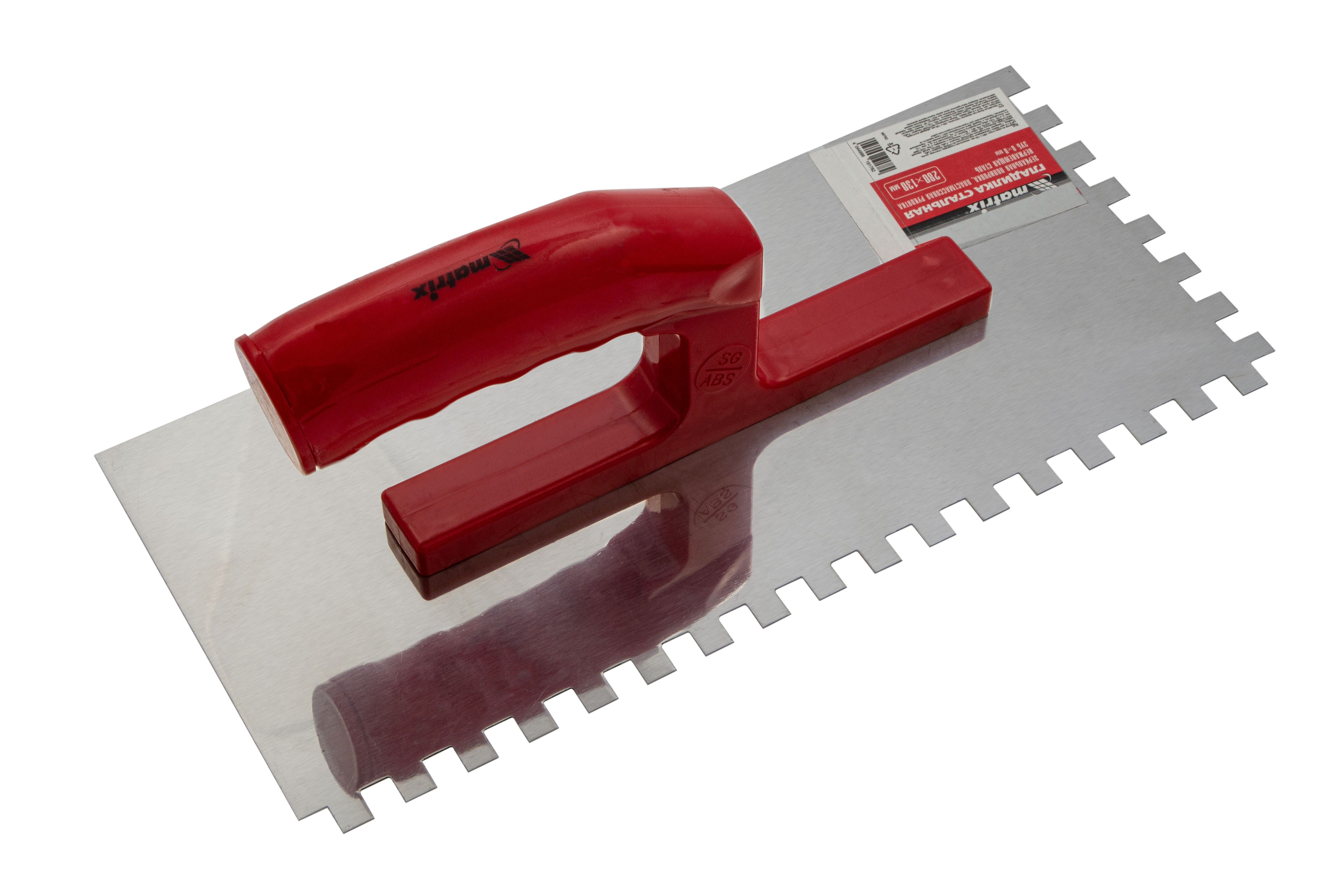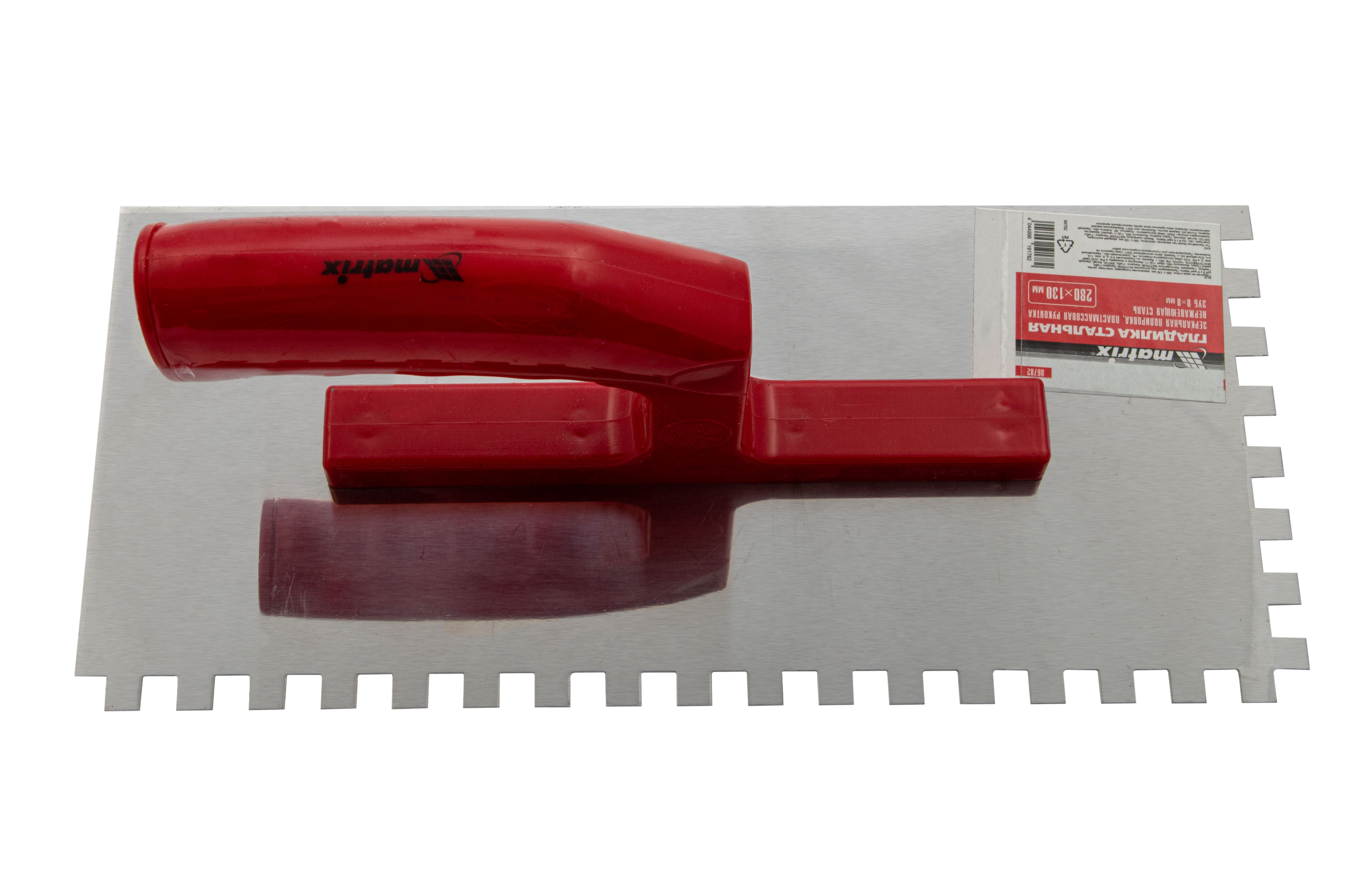 Гладилка из нержавеющей стали, 280 х 130 мм, зеркальная полировка, пластмассовая ручка, зуб 8 х 8 мм Matrix в Челябинске