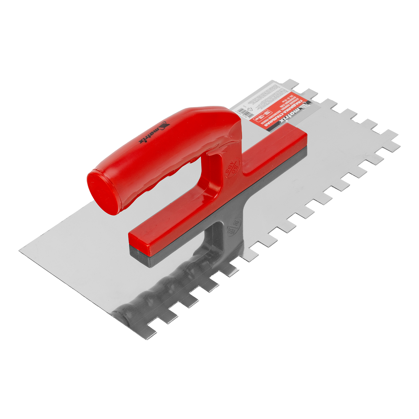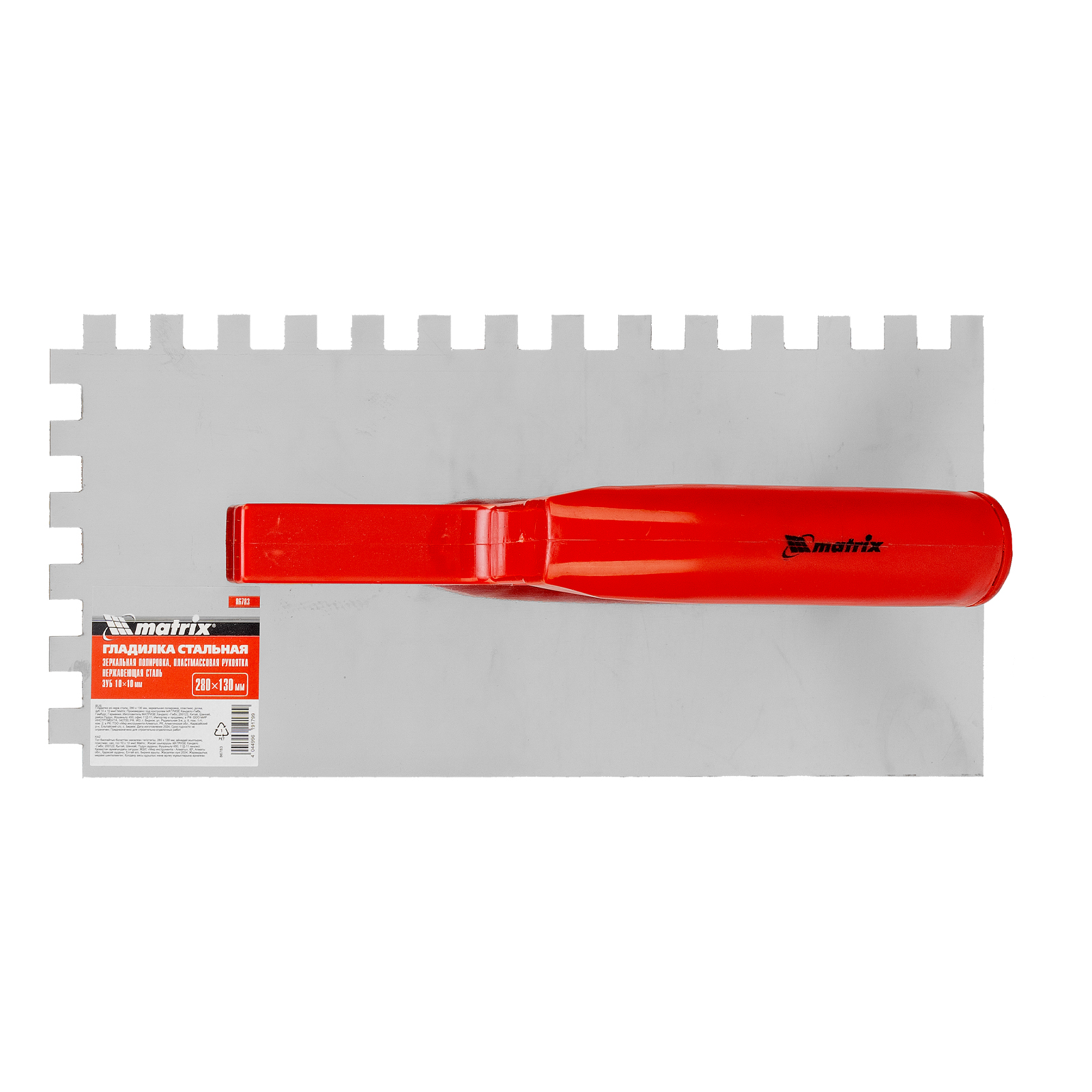 Гладилка из нержавеющей стали, 280 х 130 мм, зеркальная полировка, пластмассовая ручка, зуб 10 х 10 мм Matrix в Челябинске