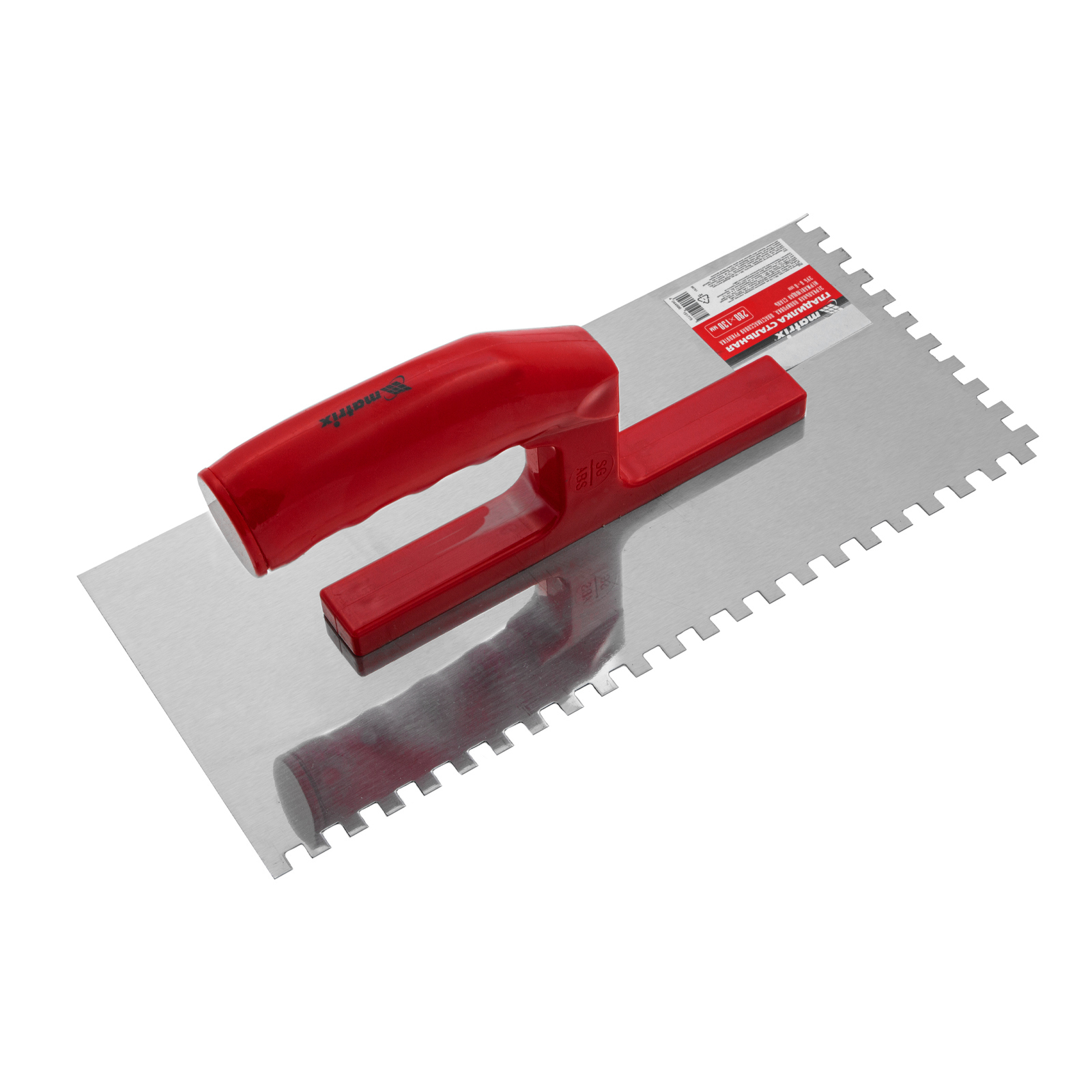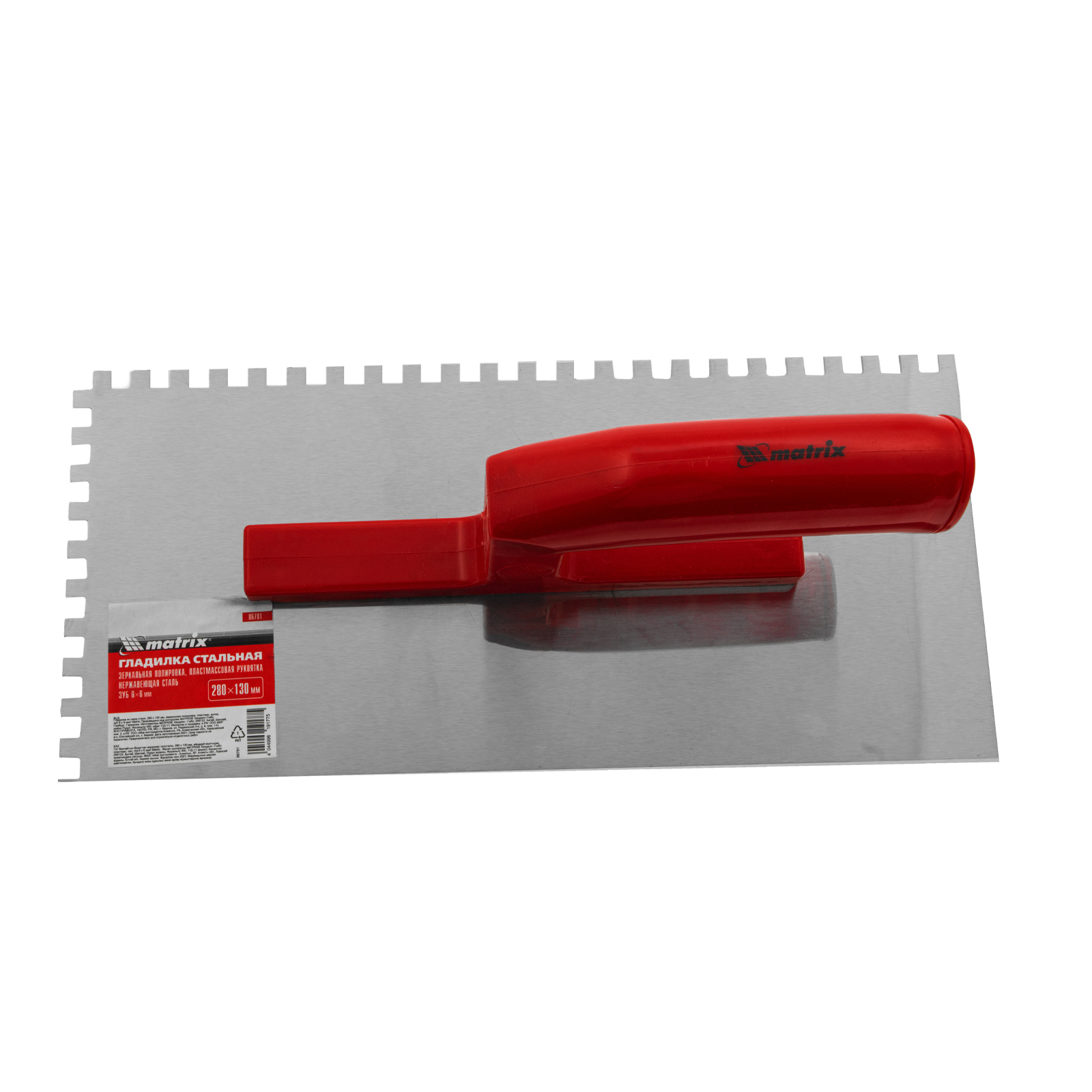 Гладилка из нержавеющей стали, 280 х 130 мм, зеркальная полировка, пластмассовая ручка, зуб 6 х 6 мм Matrix в Челябинске