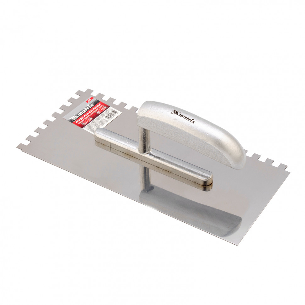 Гладилка из нержавеющей стали, 280 x 130 мм, деревянная ручка, зуб 8 x 8 мм Matrix в Челябинске