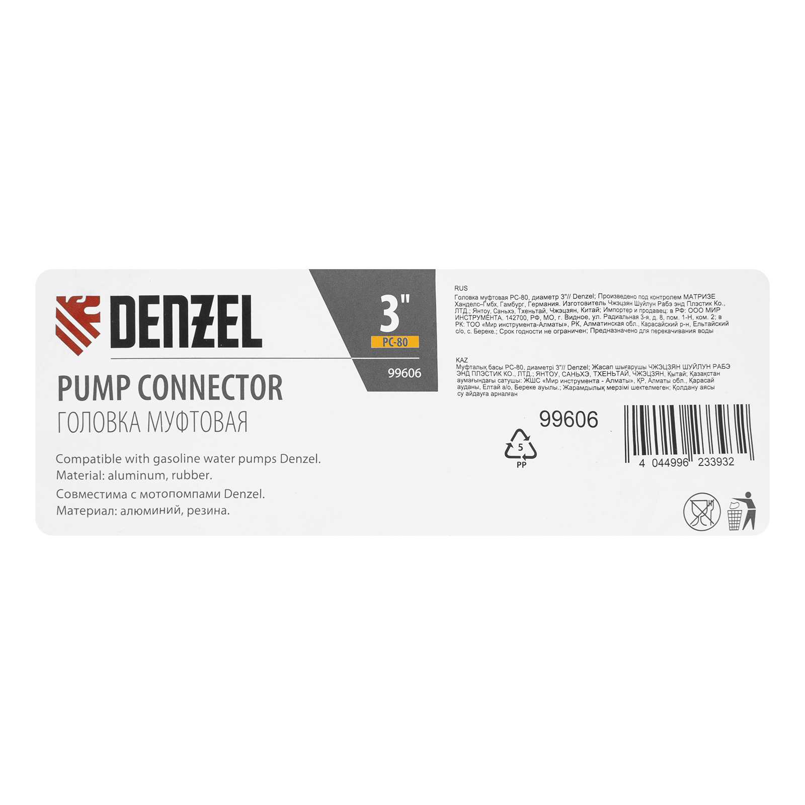 Муфтовая головка Denzel PC-80 99606 с присоединительным диаметром 3" предназначена для соединения выходного патрубка мотопомпы с напорным рукавом. Подходит к моделям Denzel 99202 и 99204. Используется для организации систем полива, водоснабжения, пожаротушения.