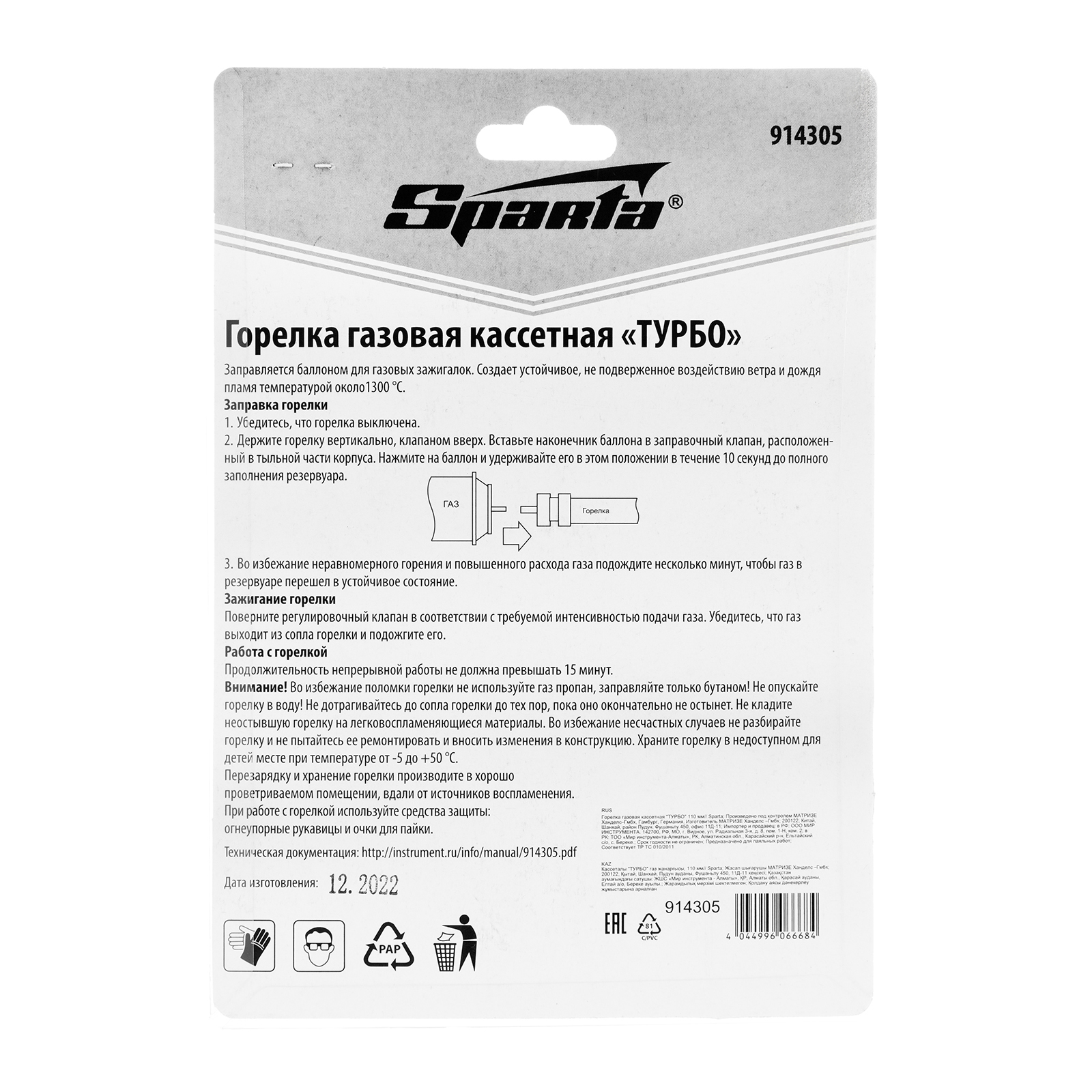 Газовая кассетная горелка Sparta «ТУРБО» 914305, 110 мм, используется для разведения огня, пайки деталей, нагрева поверхностей. Пригодится в быту, на даче, будет полезна для проведения мелкого ремонта.