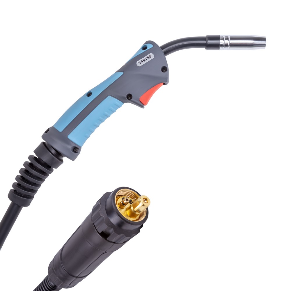 Сварочная горелка VARTEG MIG-15 3м предназначена для сварки MIG/MAG при подключении к аппаратам полуавтоматической сварки для выполнения различного вида сварочных работ. Удобная рукоятка с кнопкой управления сварочным процессом и эргономичный дизайн горелки обеспечивают максимальный комфорт во время работы. Шарнирное соединение рукоятки и рукава снижает нагрузку на кисть и запястье.ШАРНИРНОЕ СОЕДИНЕНИЕ: Шарнир между рукояткой горелки и рукавом уменьшает нагрузку на руку и запястье, что даёт мобильность, гибкость, удобство вращения, и делает процесс сварки более удобным.ЭРГОНОМИЧНОСТЬ: Эргономичная рукоятка горелки хорошо лежит в руке, а кнопка управления сваркой добавляет функциональности, удобства во время сварочного процесса и простоты обслуживания на месте проведения работ.ПРЕИМУЩЕСТВА:Воздушное охлаждениеШарнирное соединение рукоятки и рукаваУправление кнопкой на рукояткеЕвро разъёмФУНКЦИОНАЛЬНЫЕ ОСОБЕННОСТИ:ЕВРО-РАЗЪЁМ: Стандартный евро-разъём горелки даёт возможность подключения к большинству современных сварочных полуавтоматов.КОМПЛЕКТАЦИЯ: Горелка VARTEG MIG-15 3м - 1 шт.; Гусак угол изгиба 40°, длина 140 мм, резьба M6/M10 x 1мм - 1 шт.; Канал направляющий стальной синий - 1 шт.; Сопло коническое 12 мм - 1 шт.; Медный наконечник M6 x 25 х 0,8 - 1 шт.; Диффузор сопла (MIG-15) - 1 шт.; Спираль к соплу (MIG-15) - 1 шт.; Изолятор (MIG-15) - 1 шт.*Производитель оставляет за собой право вносить изменения в комплектацию оборудования без предварительного уведомления покупателя.