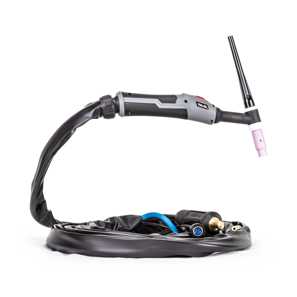 Сварочная горелка SAGGIO TIG-26 FLEX предназначена для аргонодуговой сварки вольфрамовыми электродами при выполнении различных видов сварочных работ. Удобная рукоятка с кнопкой управления сварочным процессом и гибкая головка горелки FLEX обеспечивают комфорт во время работы. А дополнительный кабель подключения 5 pin увеличивает модельный ряд совместимых сварочных аппаратов.ГОРЕЛКА FLEX: Гибкая головка горелки FLEX удобна при сварке металлических конструкций в труднодоступных местах и в ограниченном пространстве.ЭРГОНОМИЧНОСТЬ: Эргономичная рукоятка горелки хорошо лежит в руке, а съёмная кнопка управления сваркой добавляет функциональности, удобства во время сварочного процесса и простоты обслуживания на месте проведения работ.ПРЕИМУЩЕСТВА:Гибкая головка горелкиУправление кнопкой на рукояткеВоздушное охлаждениеКабель управления 5 pinСъёмная кнопка управления – простота обслуживания и ремонтаХорошая комплектация – всё что нужно для начала сварочных работКОМПЛЕКТАЦИЯ: Горелка SAGGIO TIG-26 FLEX 4М (35мм2), разъём 5-pin - 1 шт.; Сопло №5 8 мм керамическое - 1 шт.; Сопло №6 10 мм керамическое - 1 шт.; Колпачок с уплотнительным кольцом длинный - 1 шт.; Колпачок с уплотнительным кольцом короткий - 1 шт.; Цанга 1,6 мм - 1 шт.; Цанга 2,4 мм - 1 шт.; Корпус цанги 1,6 мм - 1 шт.; Корпус цанги 2,4 мм - 1 шт.; Электрод вольфрамовый WT20 175х1,6 мм - 1 шт.; Электрод вольфрамовый WT20 175х2,4 мм - 1 шт.*Производитель оставляет за собой право менять комплектацию оборудования.