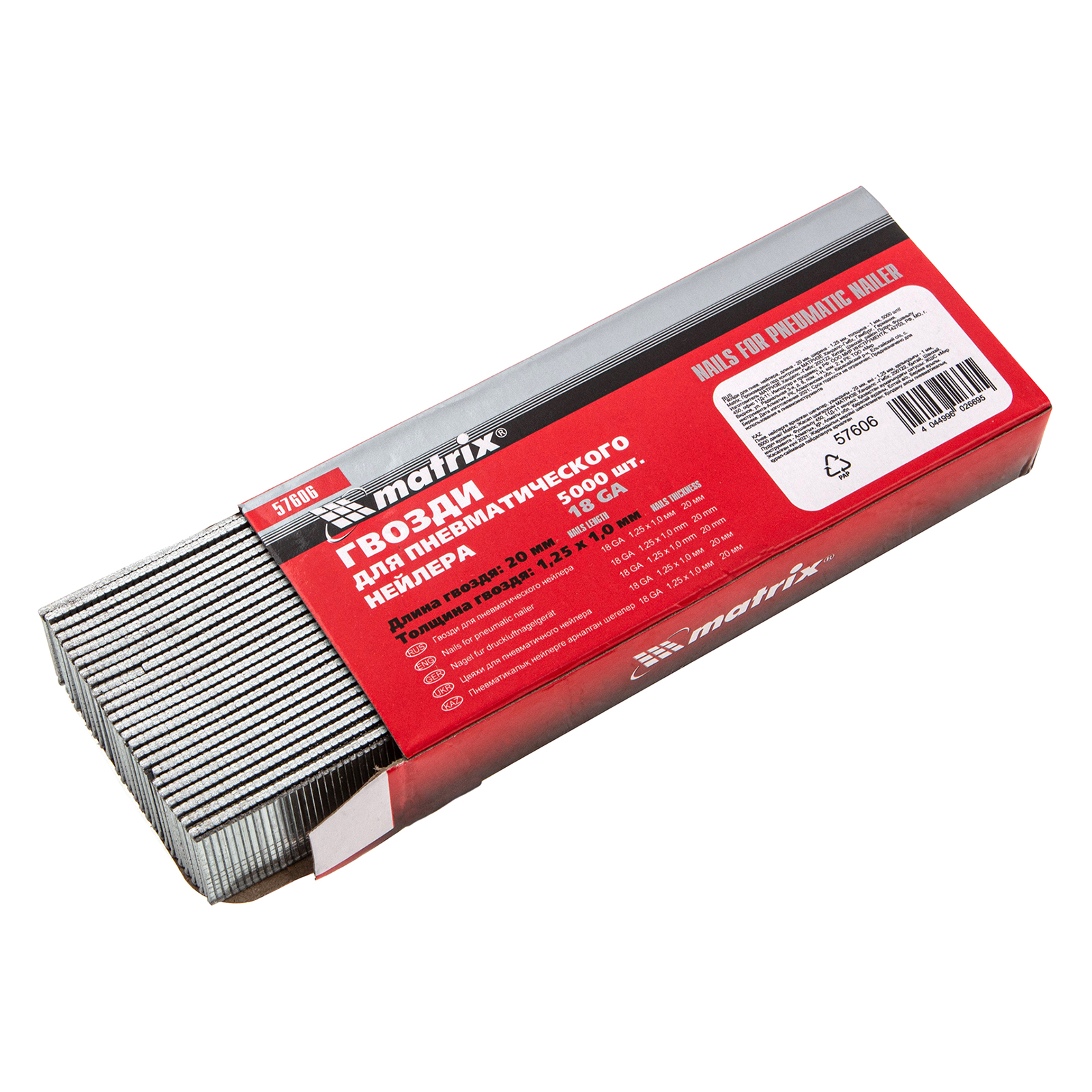 Гвозди для пневматического нейлера, длина 20 мм, ширина 1.25 мм, толщина 1 мм, 5000 шт Matrix в Челябинске