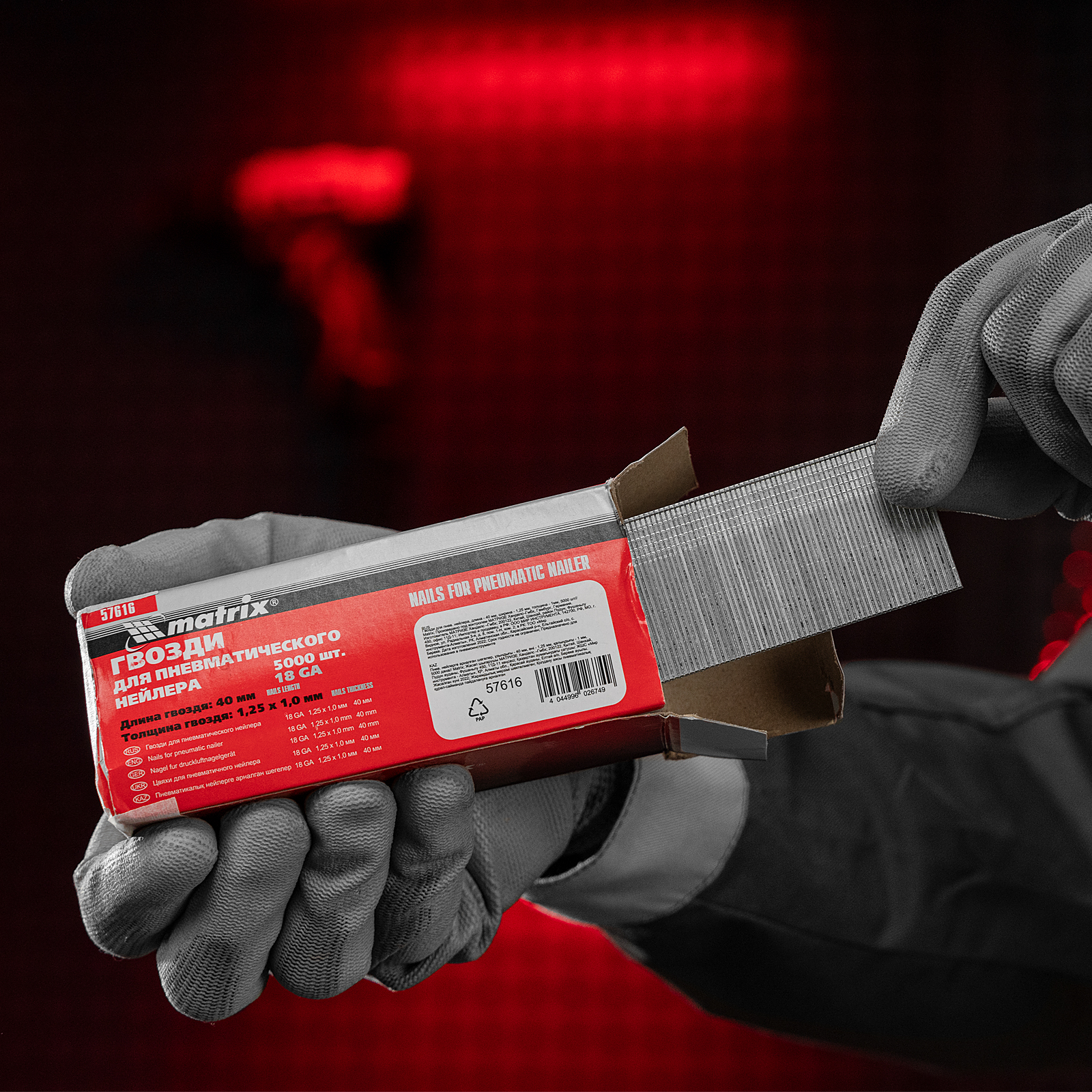 Гвозди для пневматического нейлера, длина 40 мм, ширина 1.25 мм, толщина 1 мм, 5000 шт Matrix в Челябинске