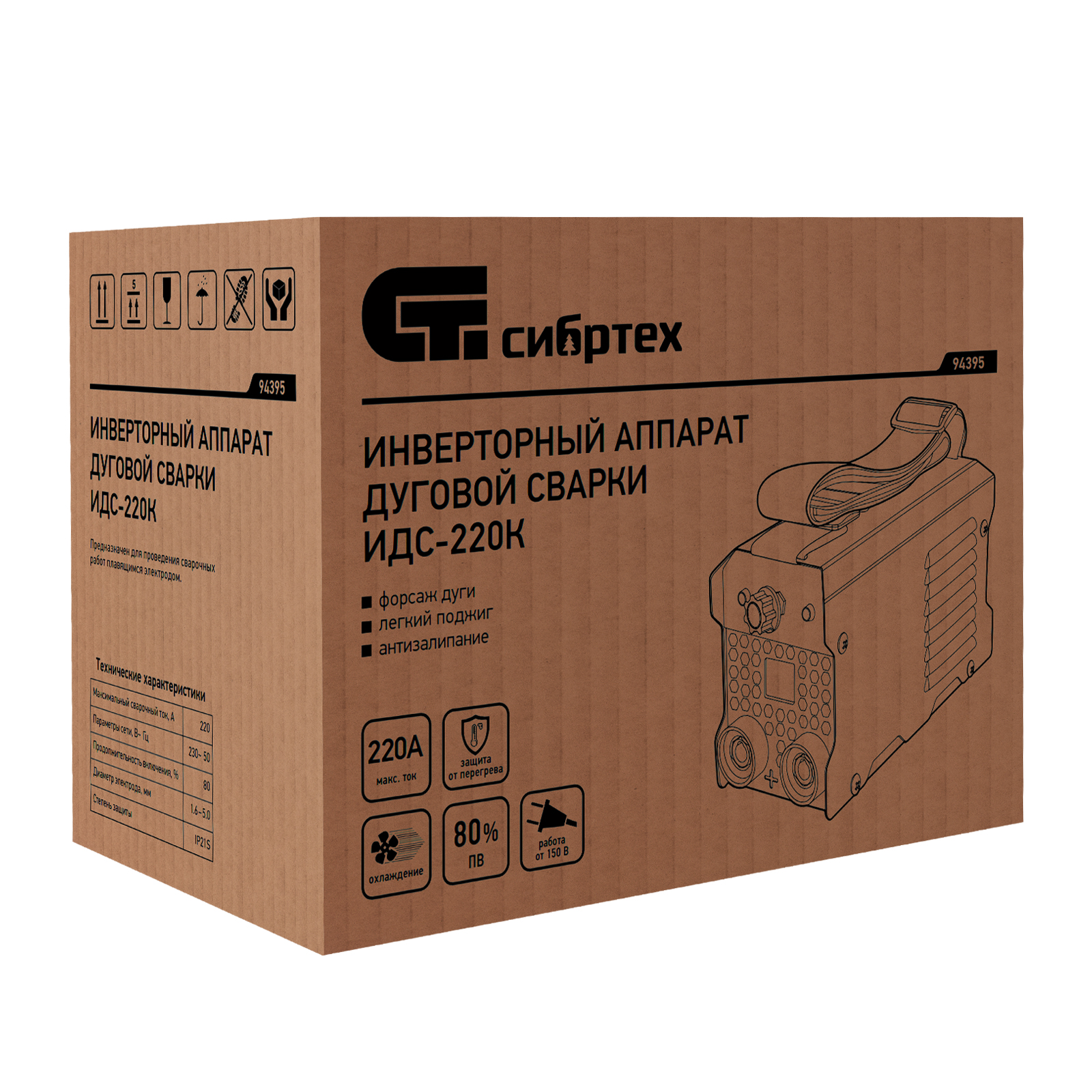 Инверторный аппарат Сибртех ИДС-220К 94395 подходит для использования в бытовых и производственных условиях. Используется для дуговой сварки изделий из низкоуглеродистой стали с помощью штучных электродов диаметром 1,6-5 мм. Диапазон сварочного тока составляет 20-220 А, продолжительность включения (ПВ) на максимальном токе 80% выгодно отличает данную модель. Аппарат не шумит, эффективно работает даже при нестабильном напряжении, оптимален для частных хозяйств, коммунальных служб, аварийно-ремонтных бригад.