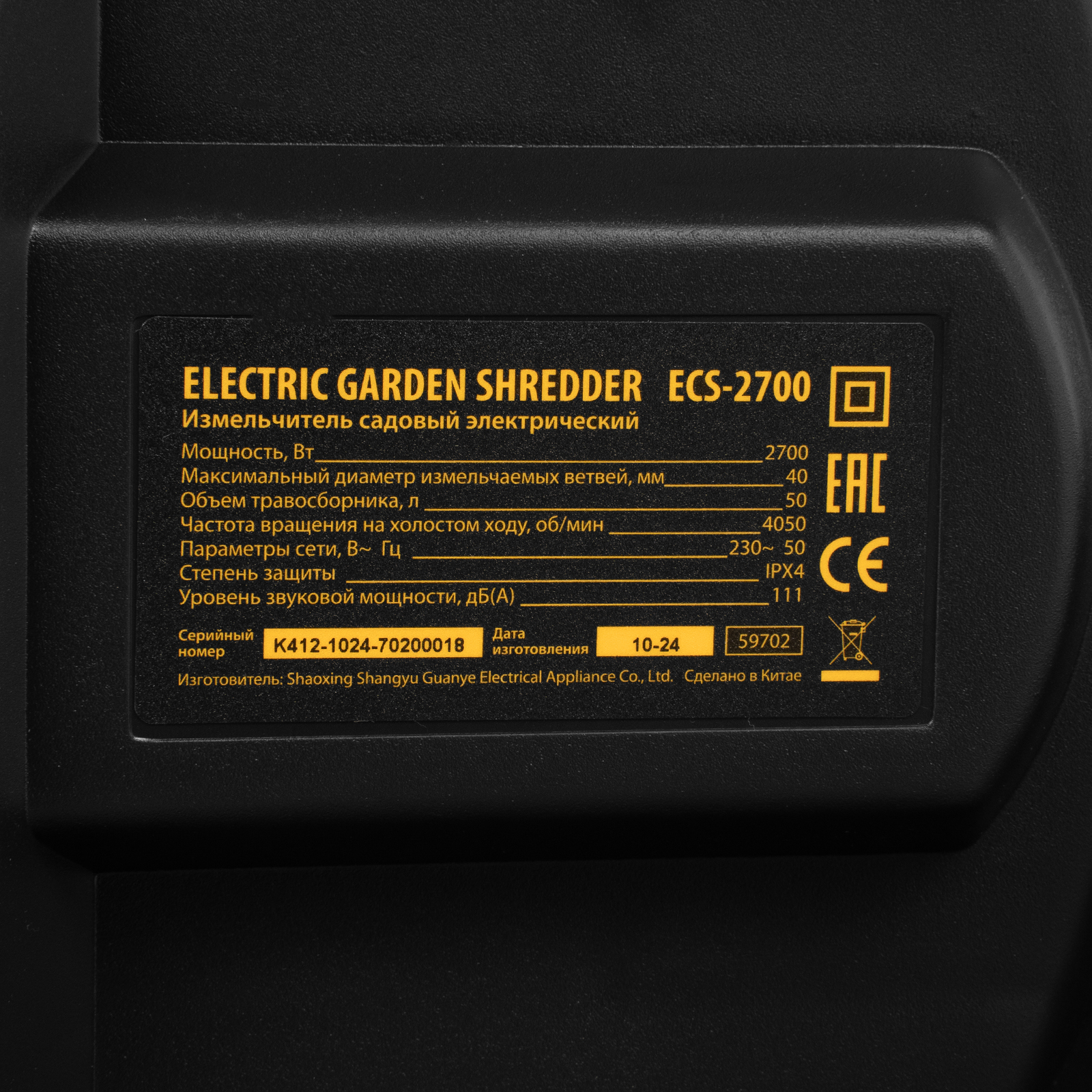 Измельчитель садовый электрический ECS-2700, 2700 Вт, 40 мм Denzel в Челябинске