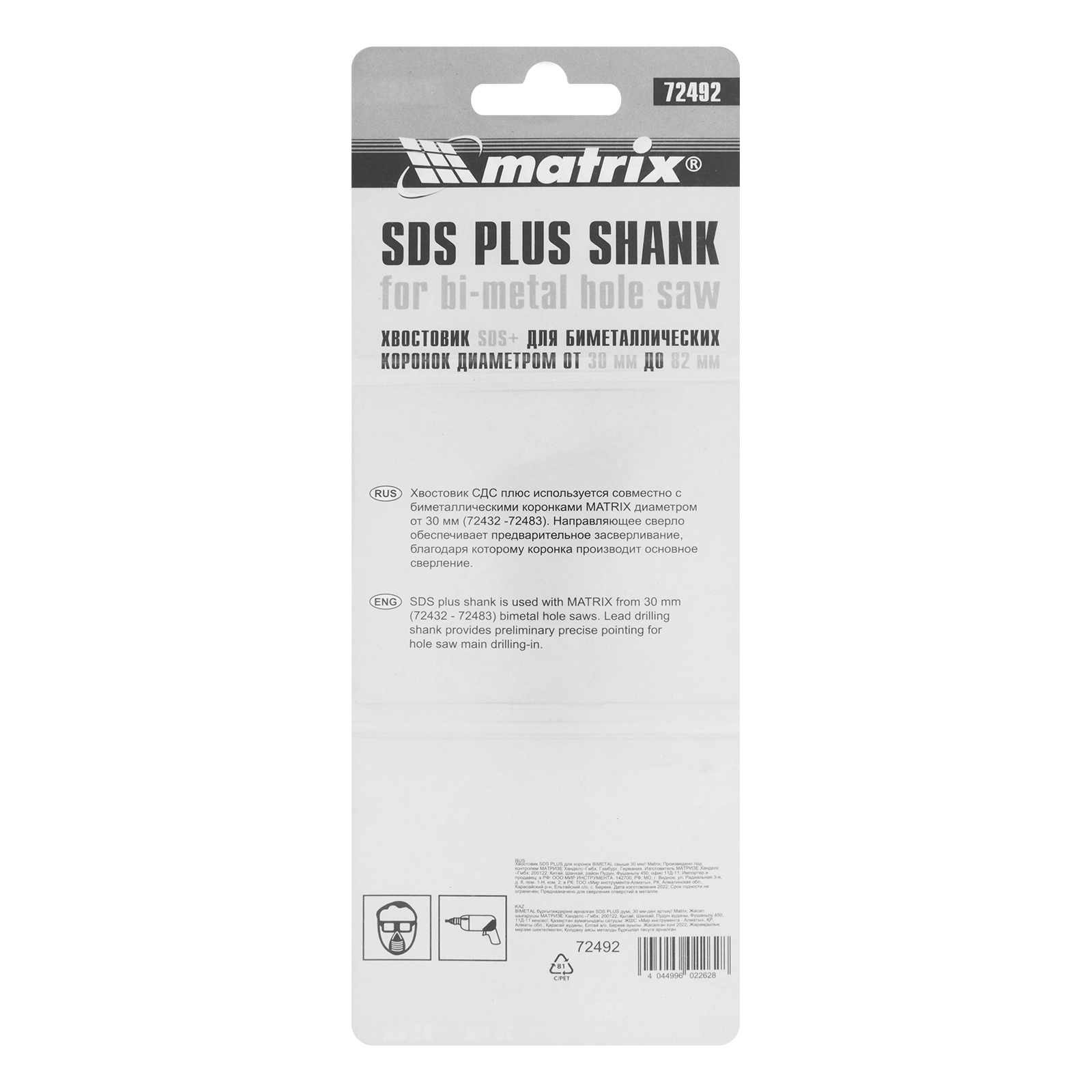 Хвостовик SDS PLUS Matrix 72492 предназначен для коронок BIMETAL 72432-72499 размером 32-140 мм. Пригодится профессиональным и частным мастерам для облегчения сверлильных операций. Направляющим сверлом можно проделать предварительное отверстие для точности работы.