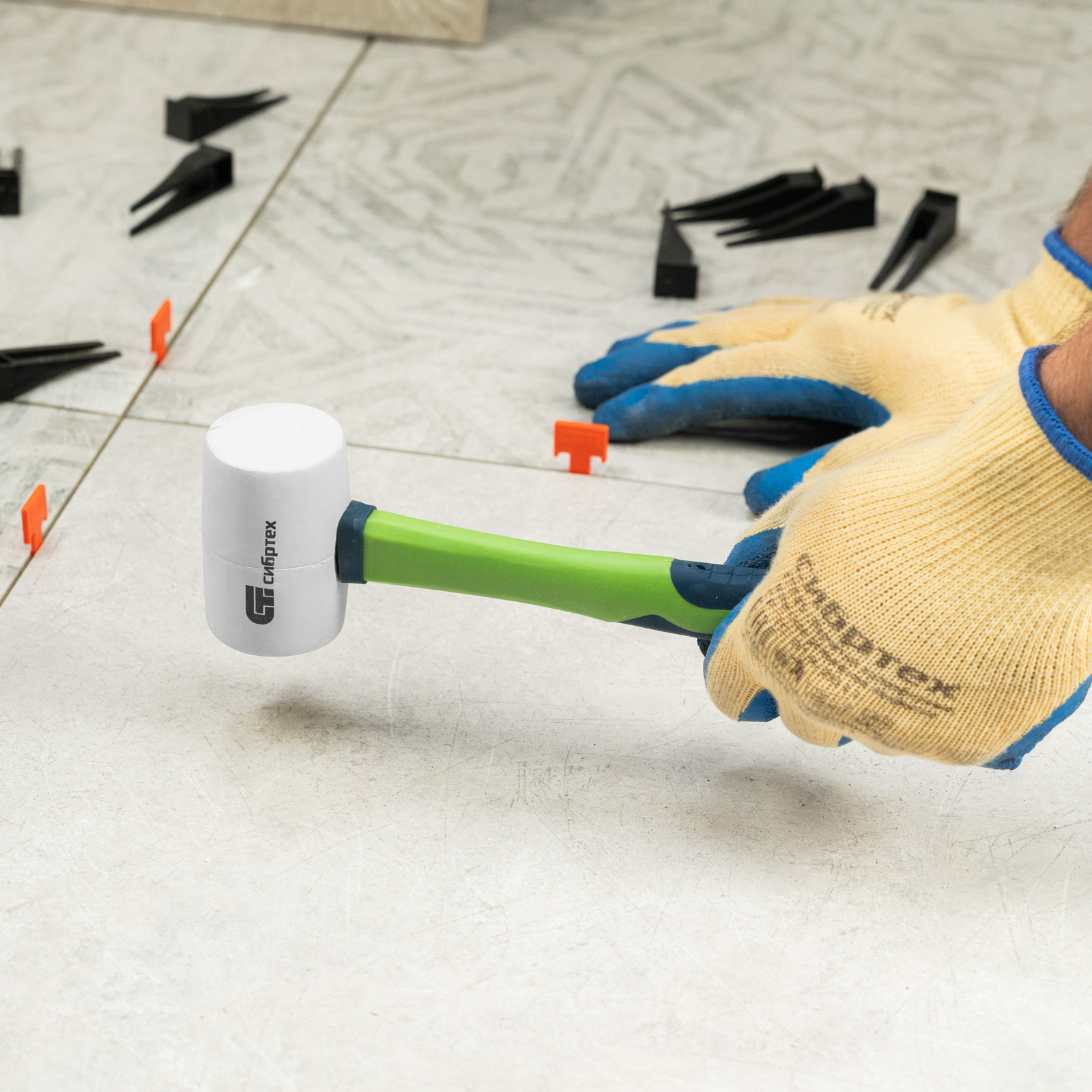 - Комфортное использование — обрезиненная рукоятка обеспечивает надежный хват и не выскальзывает из ладони, а небольшой вес киянки позволяет долго работать без усталости.