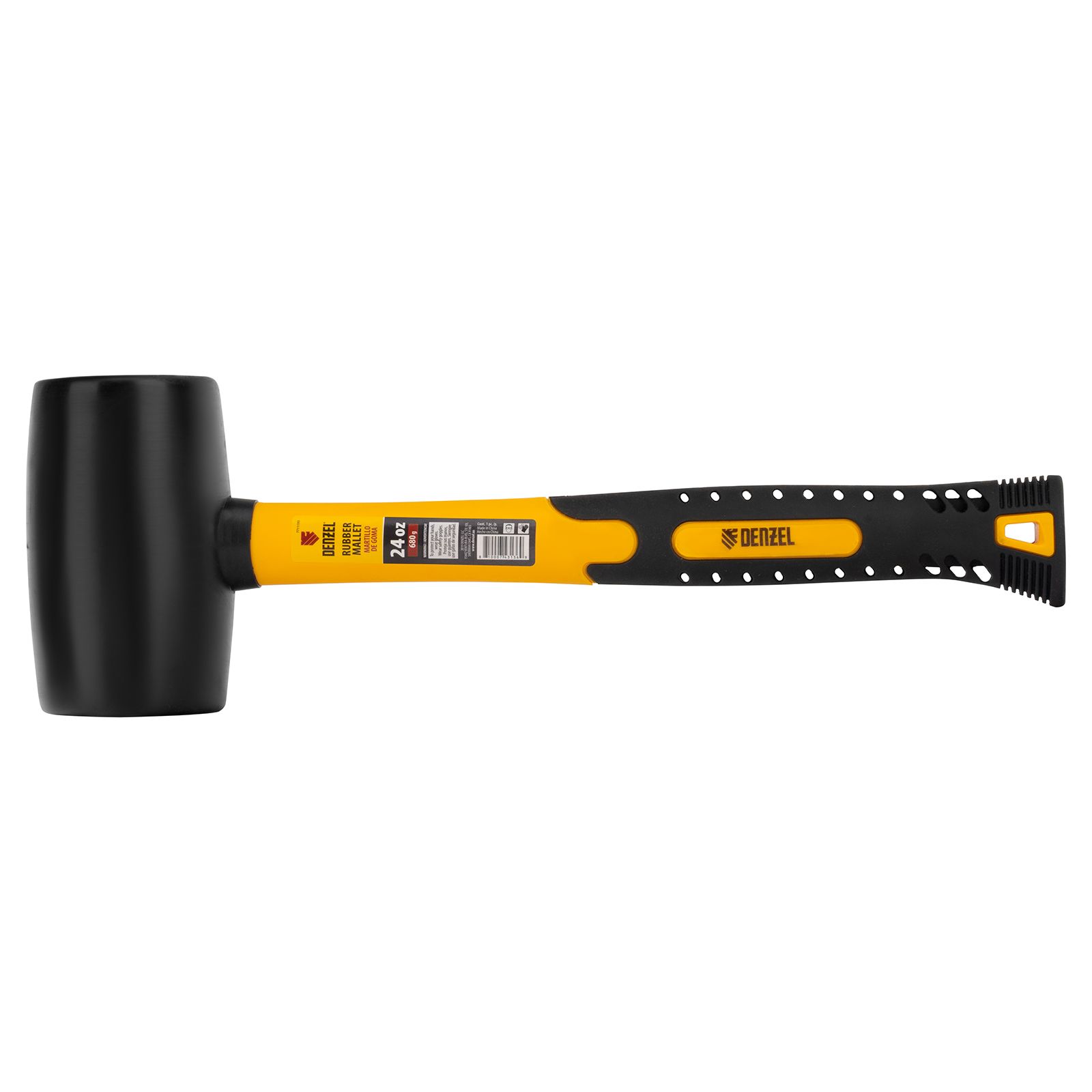 Киянка резиновая, 24 oz, черная резина, фибергласовая рукоятка Denzel в Челябинске