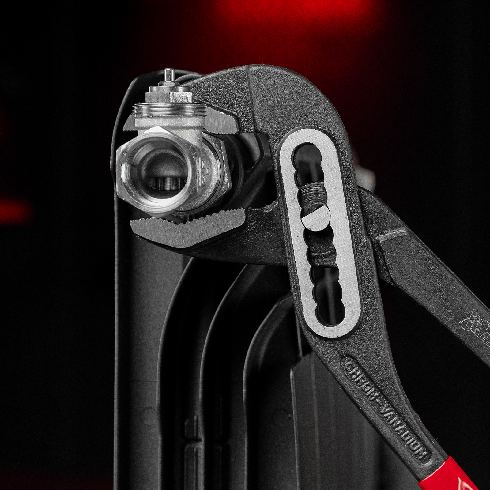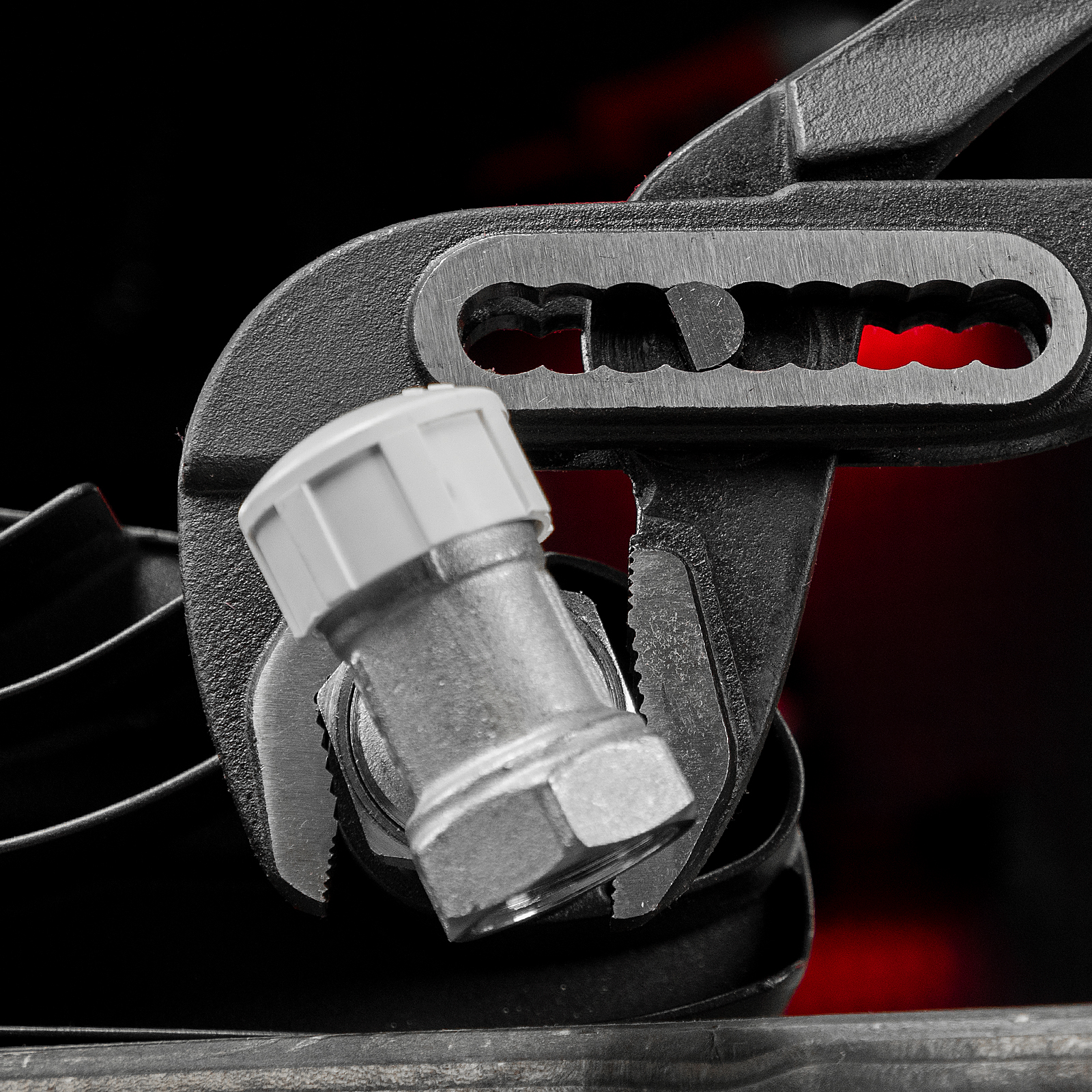 Переставные клещи Matrix 17923 длиной 400 мм, выполненные из хромованадиевой стали, с обливными рукоятками, используются для проведения монтажных и слесарных работ. Универсальный инструмент заменяет ключи различных размеров и применяется для фиксации заготовок, откручивания гаек, зажима и удержания труб диаметром до 75 мм.