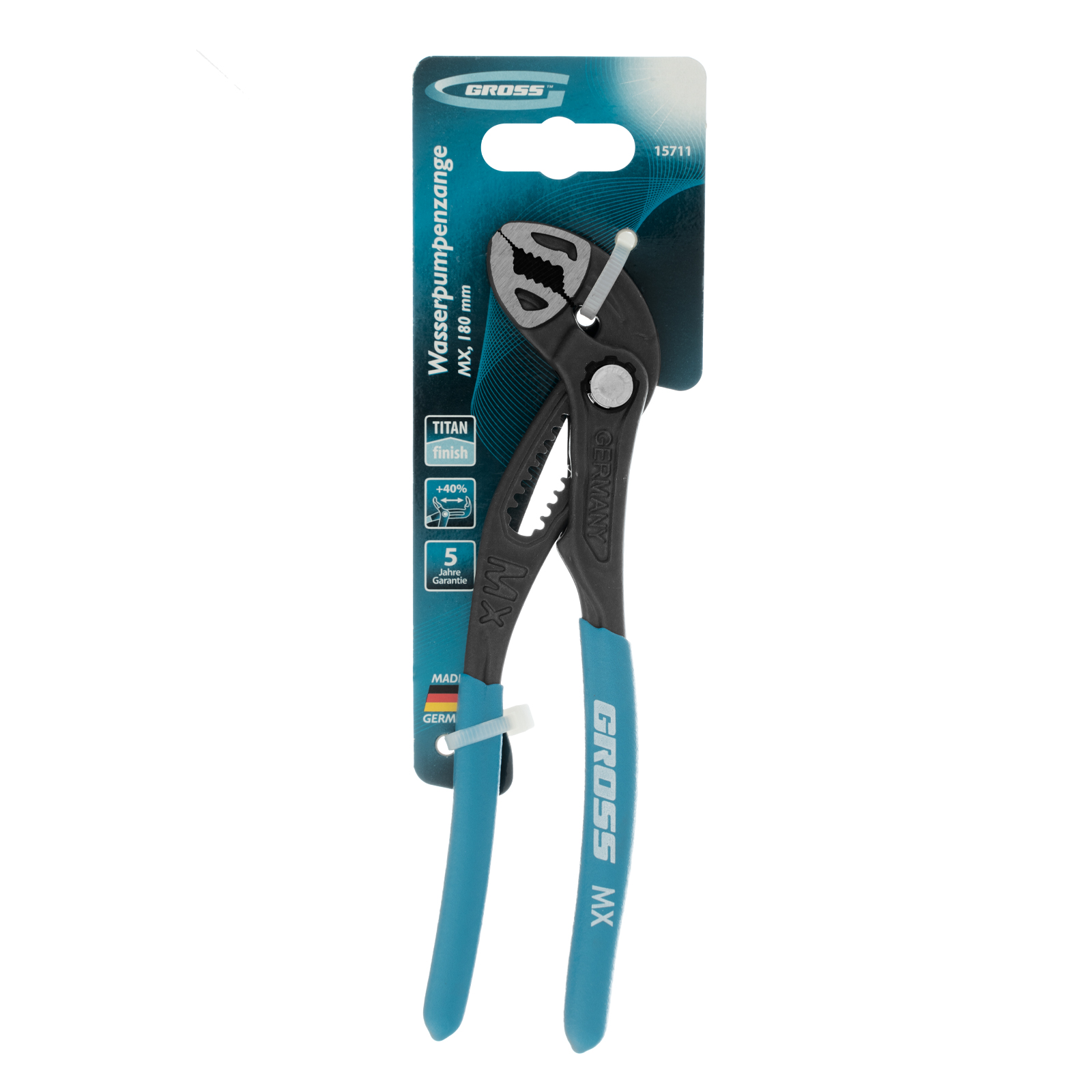 Переставные клещи Gross 15711 длиной 180 мм, с кнопочным механизмом и обливными рукоятками, — профессиональный инструмент для работ с сантехникой, фитингами, трубами и т.д. Рабочие губки с насечками обеспечивают надежный захват изделий диаметром до 35 мм. Клещи удобны для работы в труднодоступных местах.