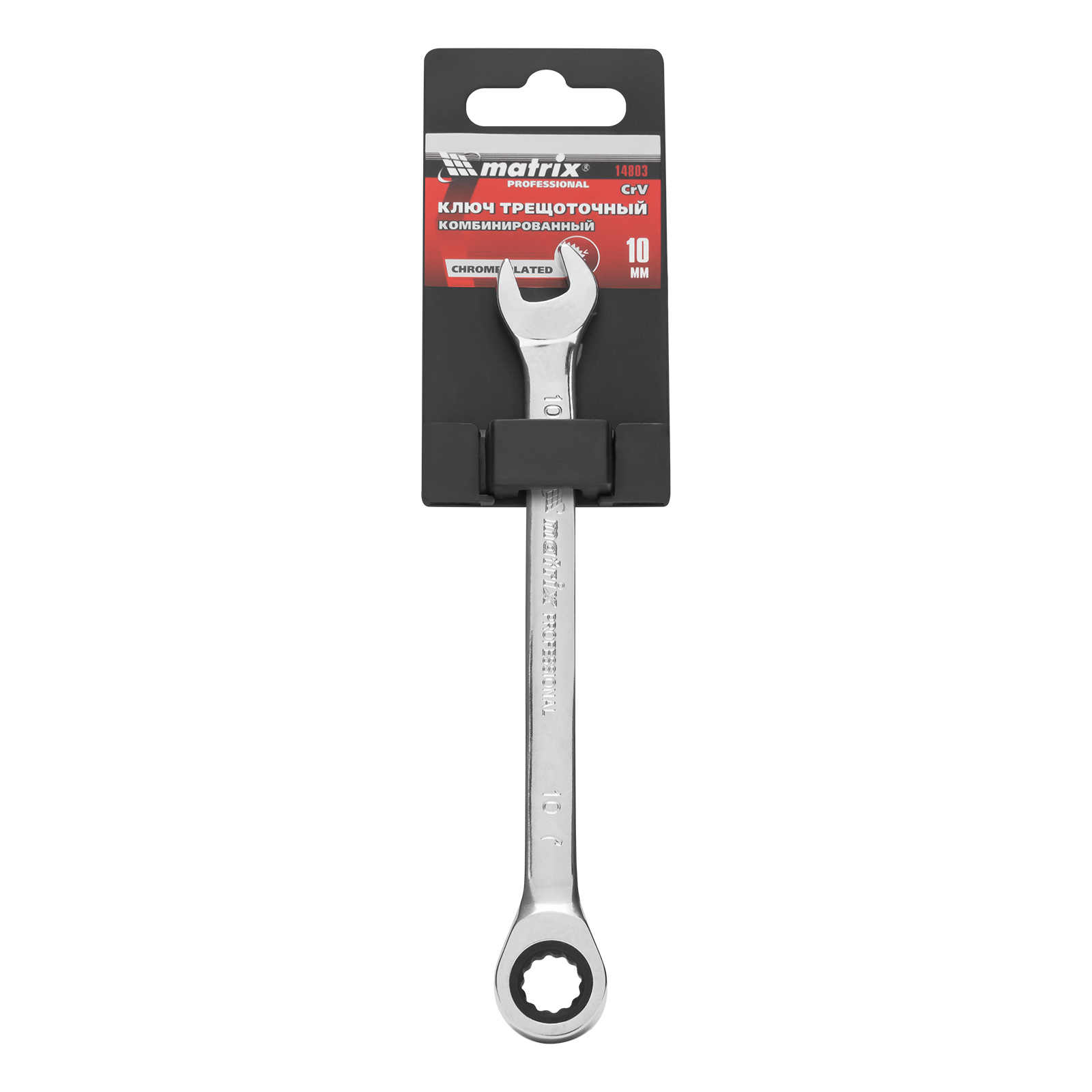 Ключ комбинированный трещоточный, 10 мм, CrV, зеркальный хром Matrix Professional в Челябинске