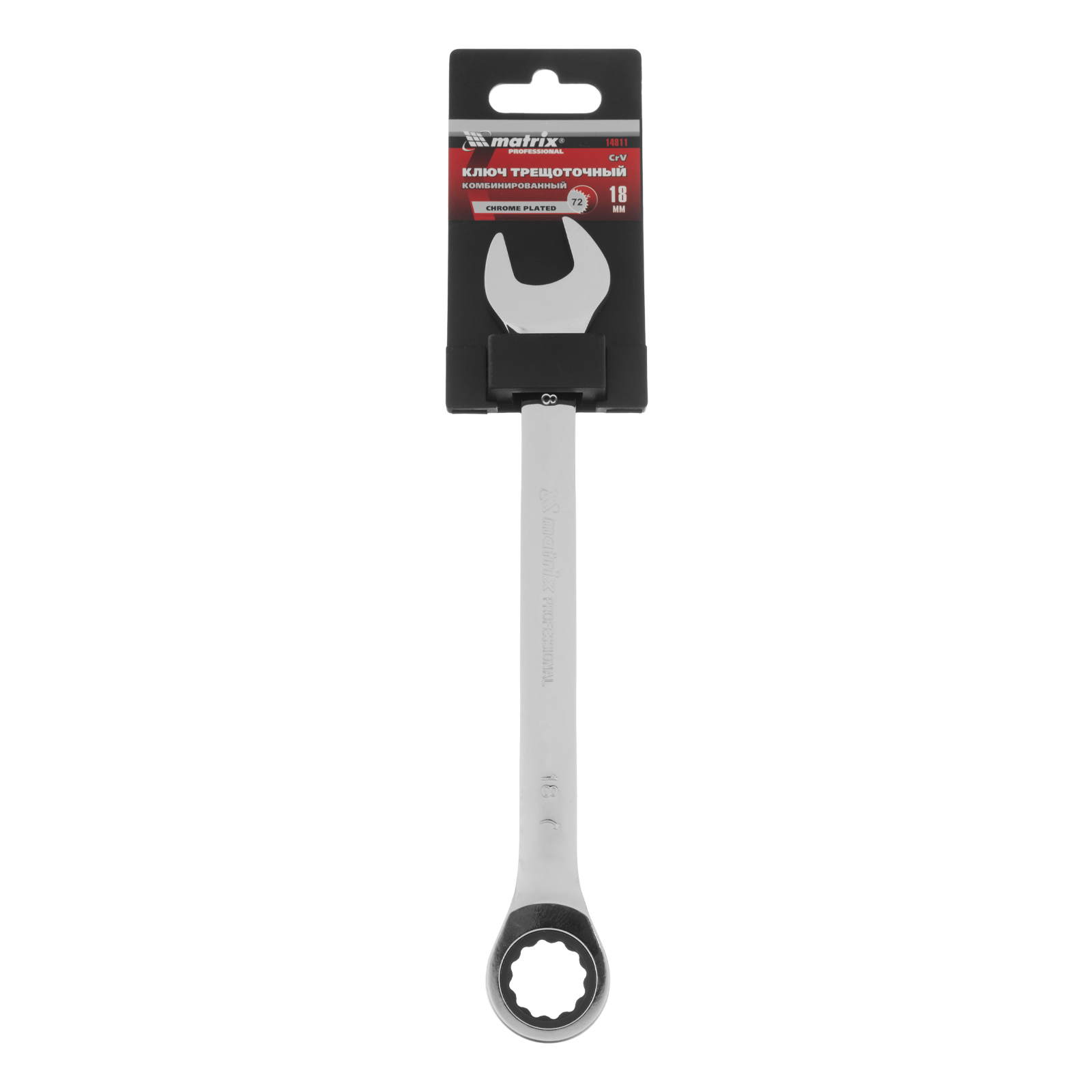 Ключ комбинированный трещоточный, 18 мм, CrV, зеркальный хром Matrix Professional в Челябинске