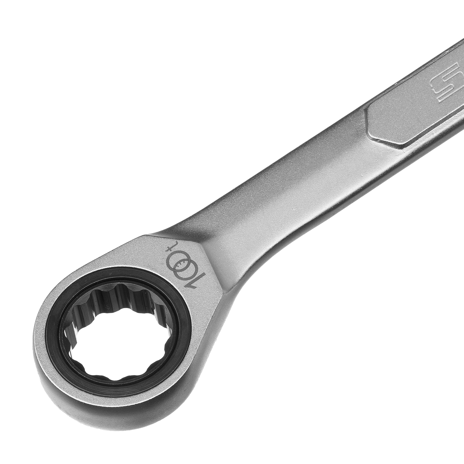 - Храповый механизм оснащен 100 зубцами, что обеспечивает плавность хода инструмента (шаг трещотки всего 3,6 градусов) и делает его удобным для работы в ограниченном пространстве.