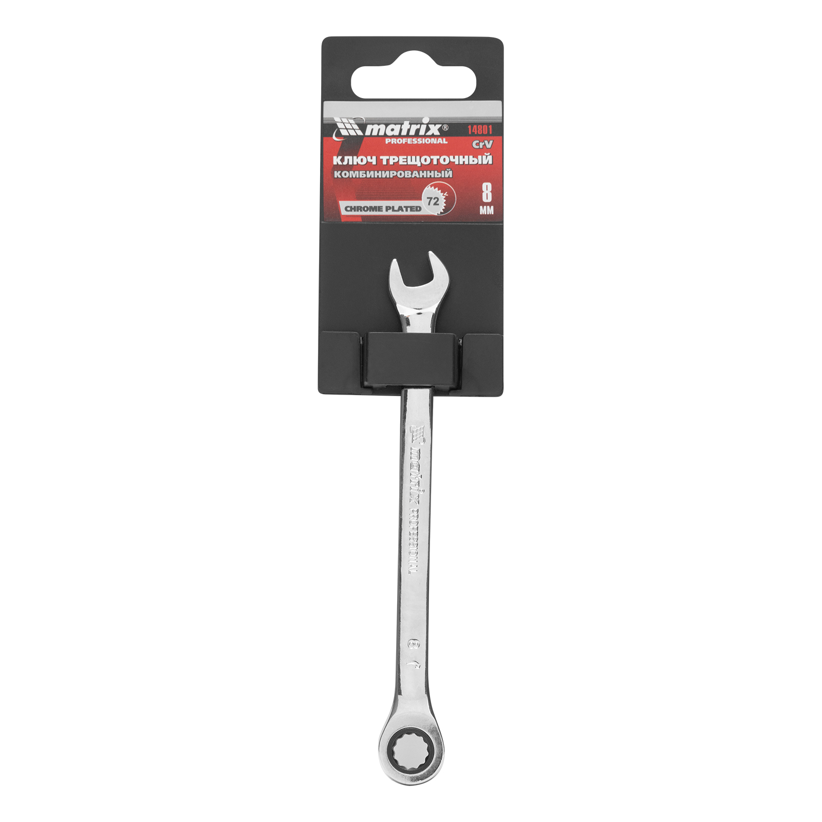 Ключ комбинированный трещоточный, 8 мм, CrV, зеркальный хром Matrix Professional в Челябинске