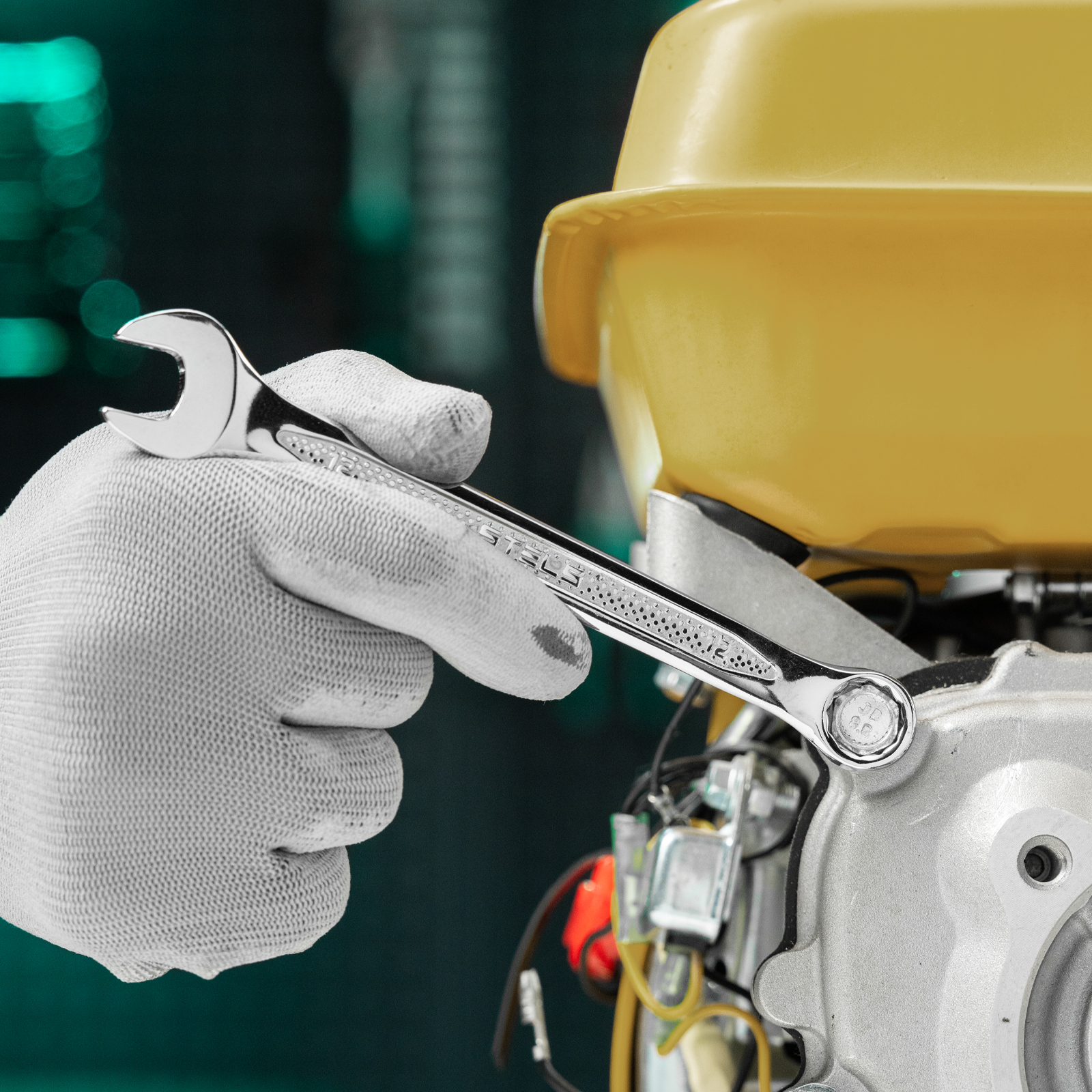 Комбинированный ключ Stels 15249 из стали CrV, 12 мм, антислип, позволяет откручивать и закручивать резьбовые соединения. Универсален в применении, т.к. имеет кольцевую и рожковую головки. 12-гранный профиль накидного зева обеспечивает увеличенную площадь контакта с поверхностью крепежа, что минимизирует вероятность его деформации. Ключ будет полезен в автомастерской, для монтажа и демонтажа оборудования, пригодится для работ по дому.