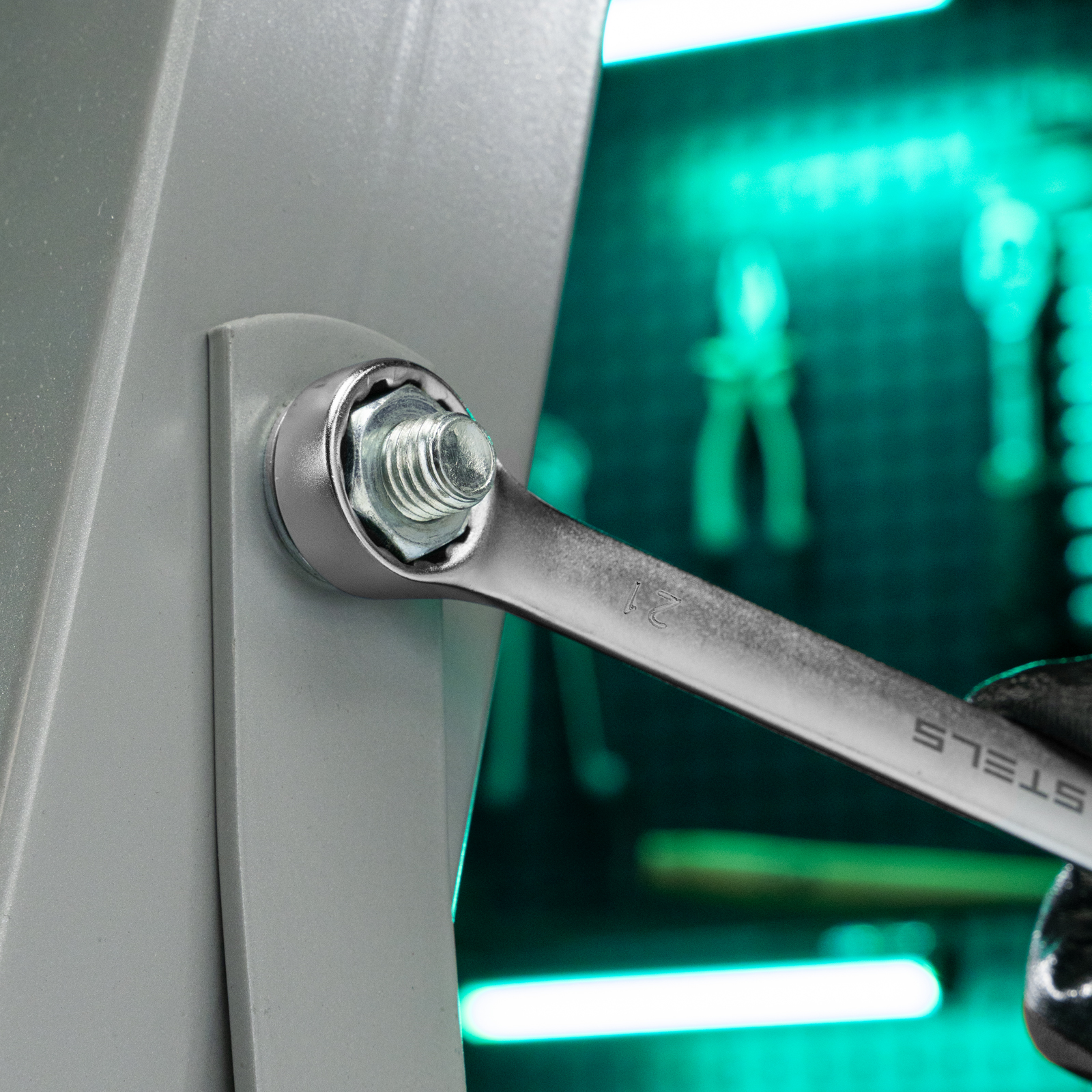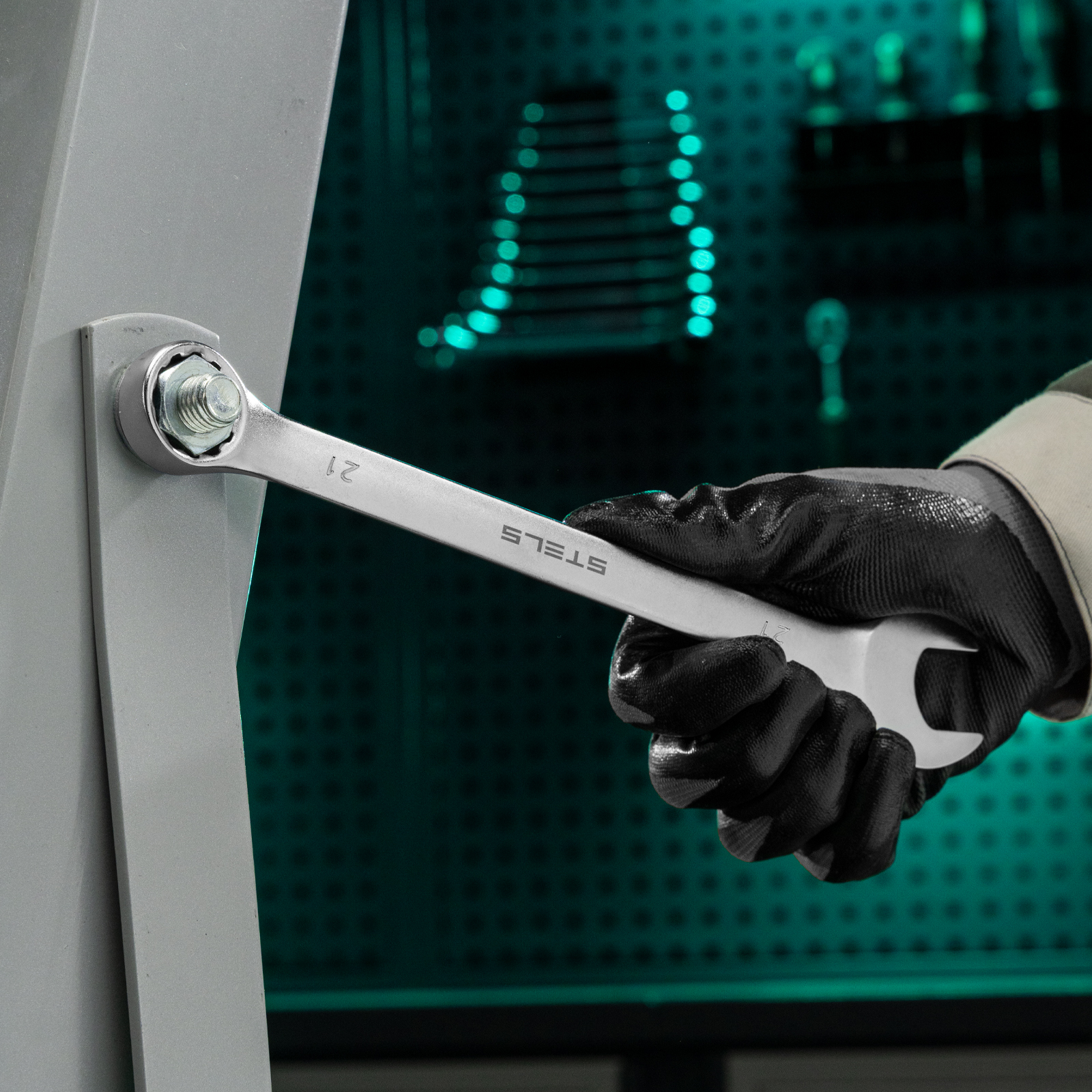 Комбинированный ключ Stels 15225 из стали CrV, 21 мм, покрытый матовым хромом, используется для закручивания и откручивания гаечных и болтовых соединений. Накидная головка имеет 12-гранную внутреннюю поверхность, что облегчает работу с крепежом и уменьшает опасность его повреждения. Ключ применяется в слесарных мастерских и автосервисах, а также будет полезен для решения бытовых задач.