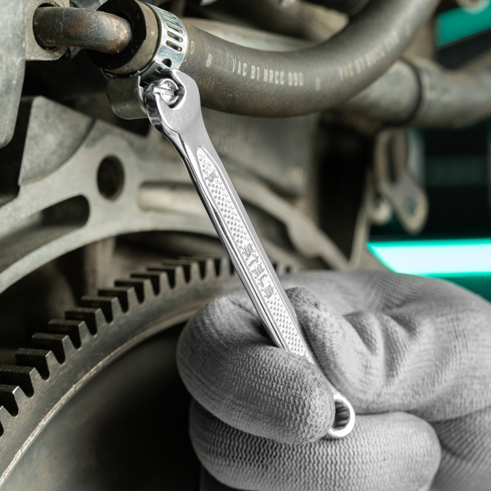 - Удобство при выполнении монтажных работ — кольцевой зев смещен на 15 градусов относительно тела ключа.