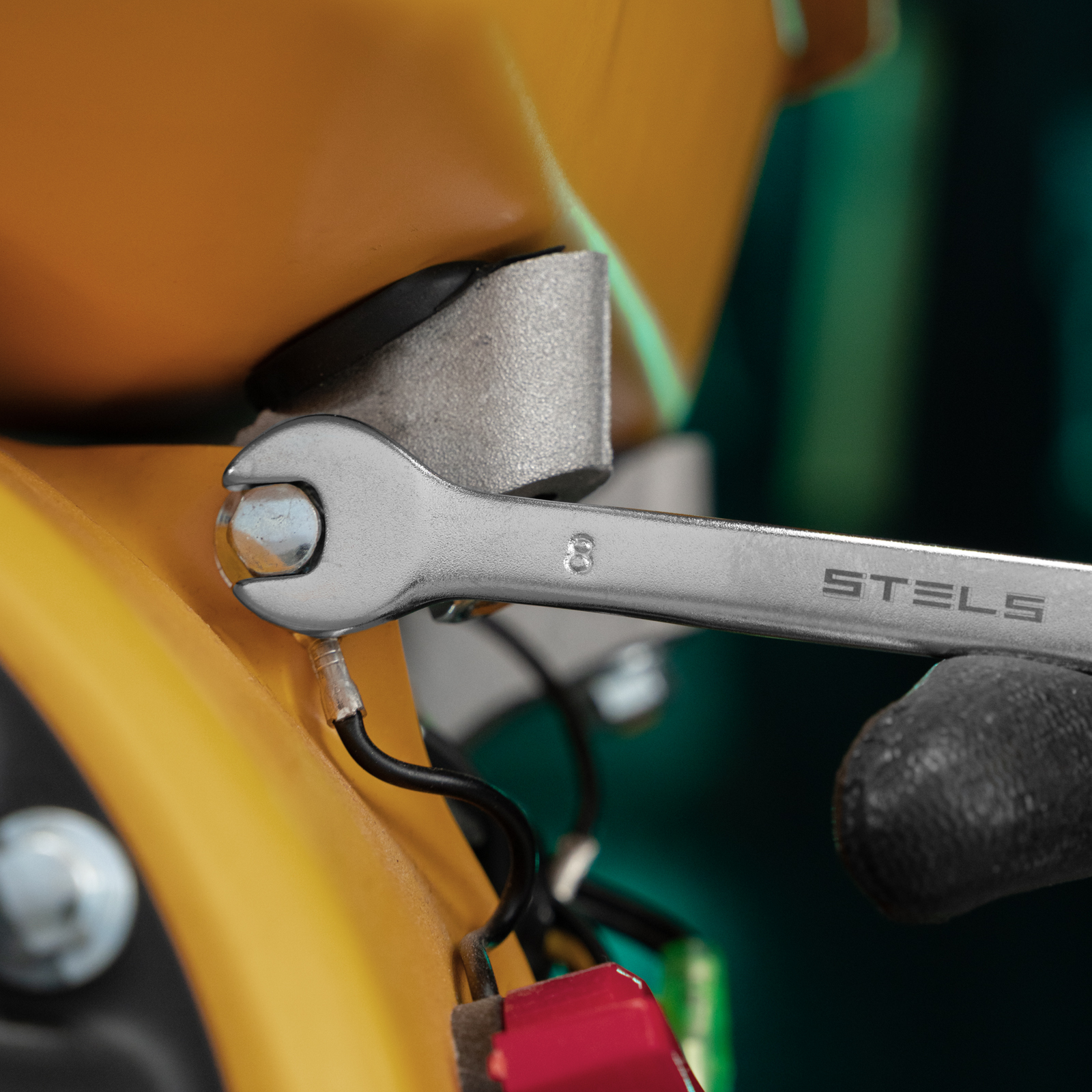 - Высокий показатель прочности — ключ изготовлен из стали хромованадиевой группы, рабочая часть закалена до твердости 45 HRC.
