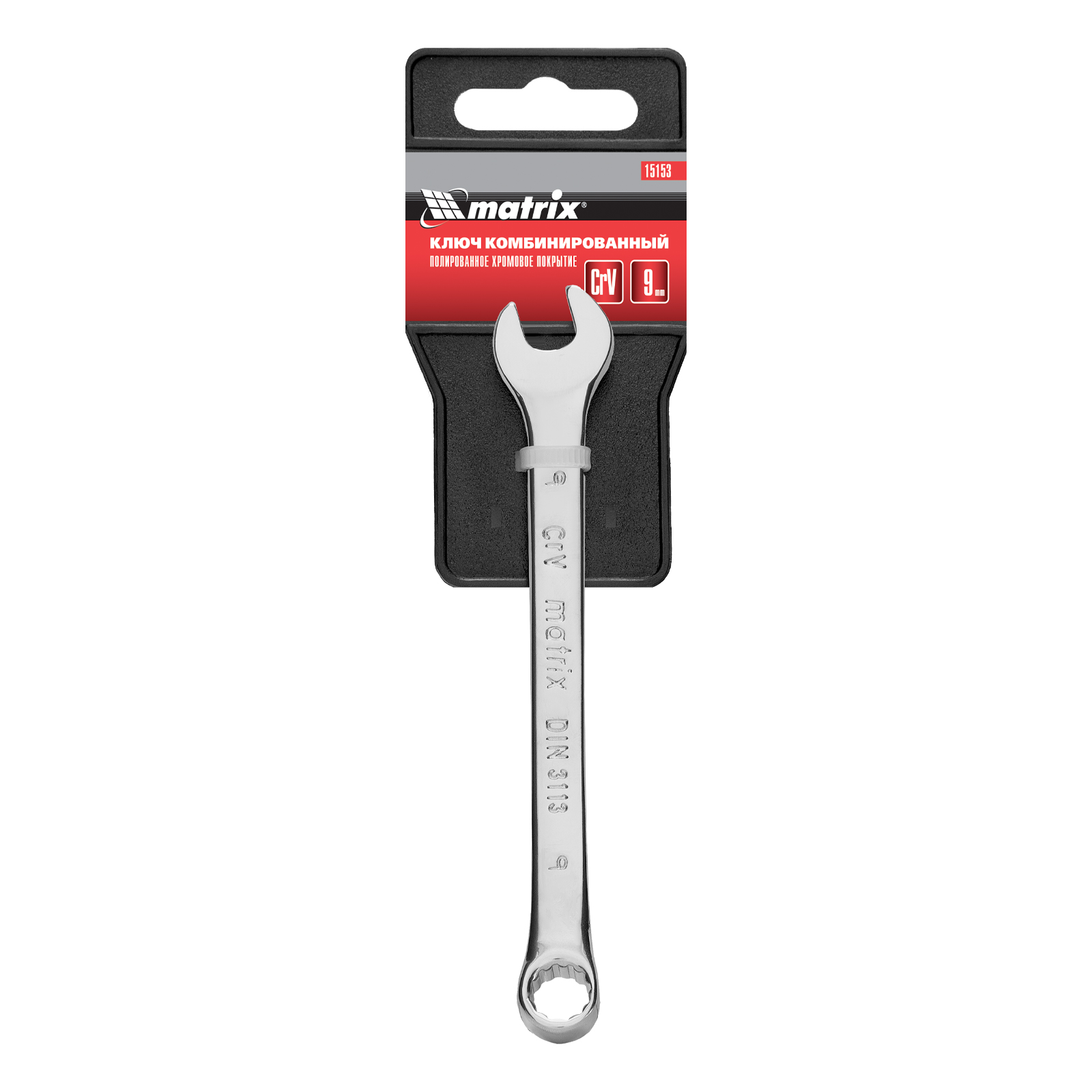 Ключ комбинированный, 9 мм, CrV, полированный хром Matrix в Челябинске