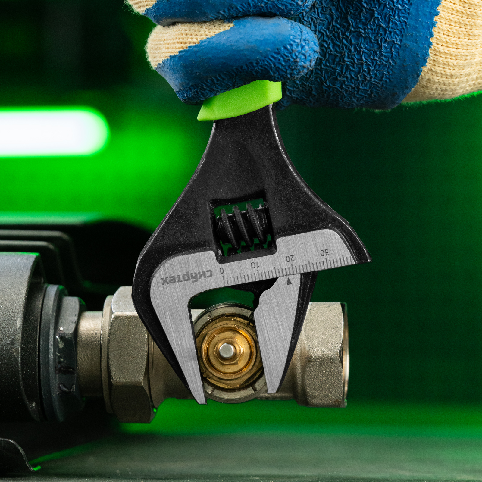 Фосфатированный разводной ключ с тонкими губками Сибртех 15534 длиной 200 мм применяется для монтажа и демонтажа гаек, болтов и других резьбовых соединений. Ширина зева регулируется до 39 мм, что на 30% больше, чем у стандартных разводных ключей, — это позволяет работать как с мелкими, так и с крупными деталями. Тонкие удлиненные губки облегчают работу в труднодоступных местах.