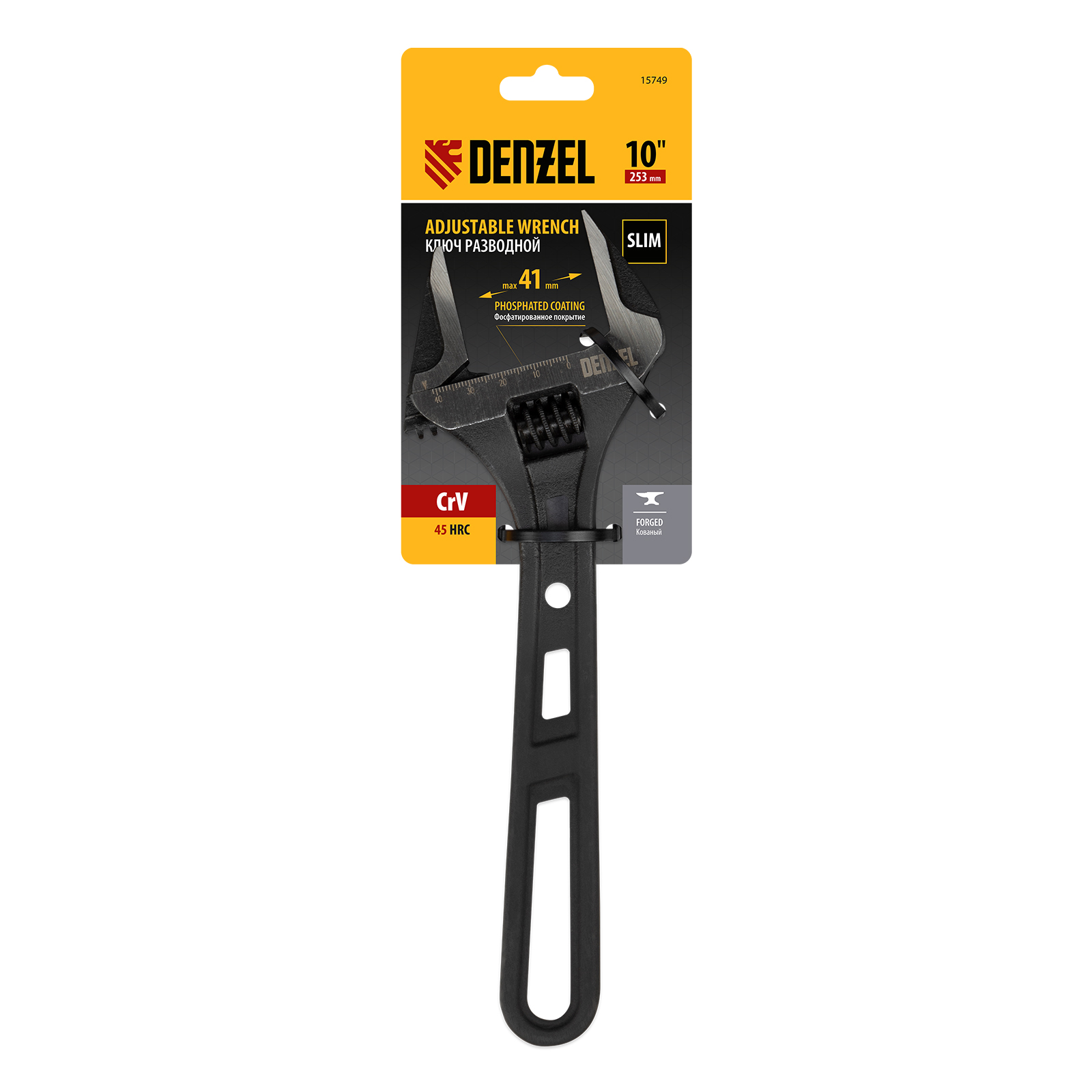 Ключ разводной, 250 мм, CrV, кованый Denzel в Челябинске
