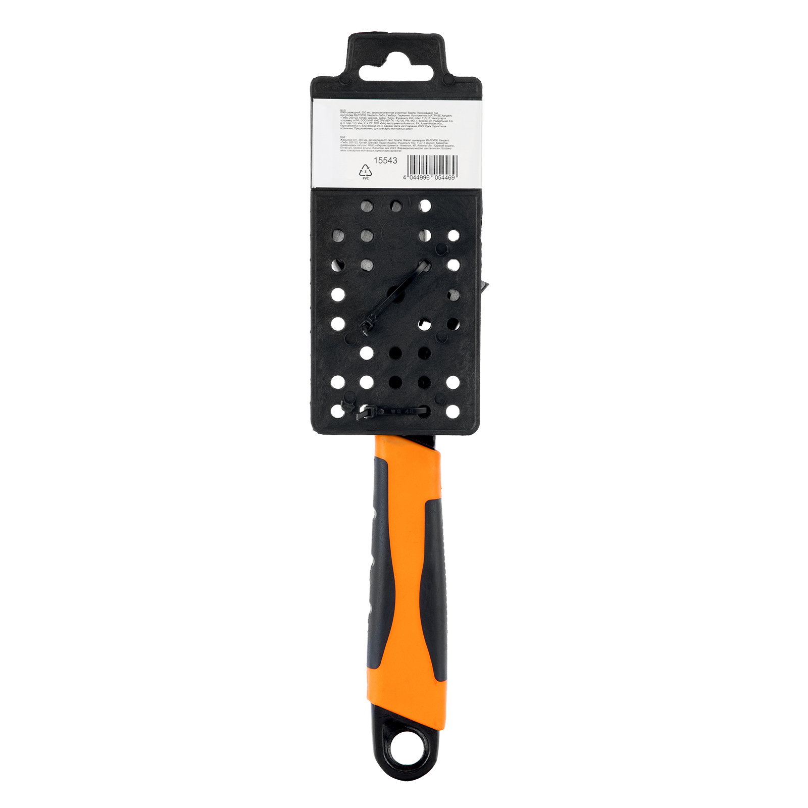 Разводной ключ Sparta 15543 длиной 250 мм, с двухкомпонентной рукояткой, имеет регулируемый зев и подходит для работы с любыми крепежными деталями диаметром до 30 мм, в том числе нестандартными. Инструмент заменяет целый комплект гаечных ключей и пригодится для бытового применения.