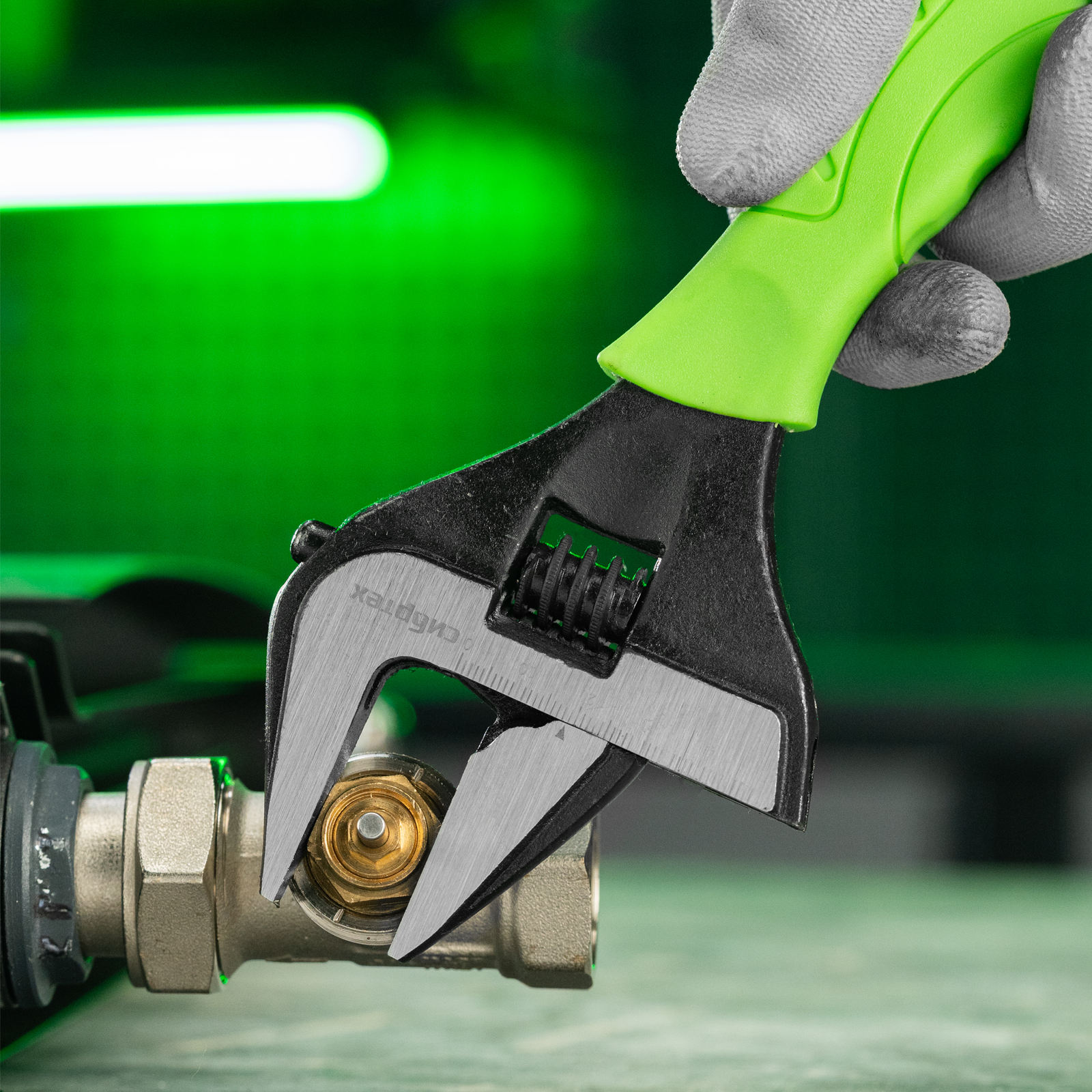 Фосфатированный разводной ключ с тонкими губками Сибртех 15536 длиной 250 мм применяется для монтажа и демонтажа гаек, болтов и других резьбовых соединений. Ширина зева регулируется до 50 мм, что на 30% больше, чем у стандартных разводных ключей, — это позволяет работать как с мелкими, так и с крупными деталями. Тонкие удлиненные губки облегчают работу в труднодоступных местах.