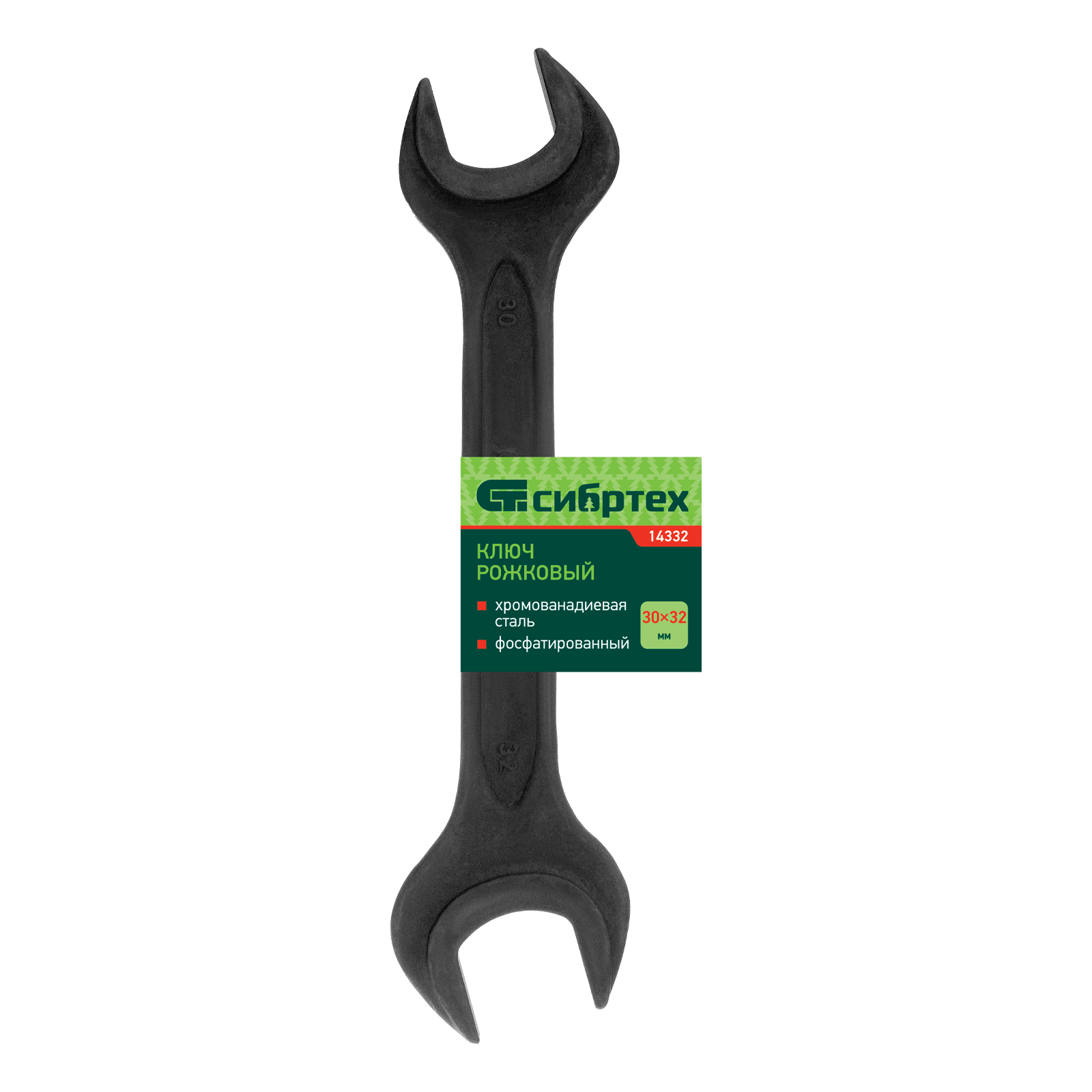 Ключ рожковый, 30 х 32 мм, CrV, фосфатированный Сибртех в Челябинске