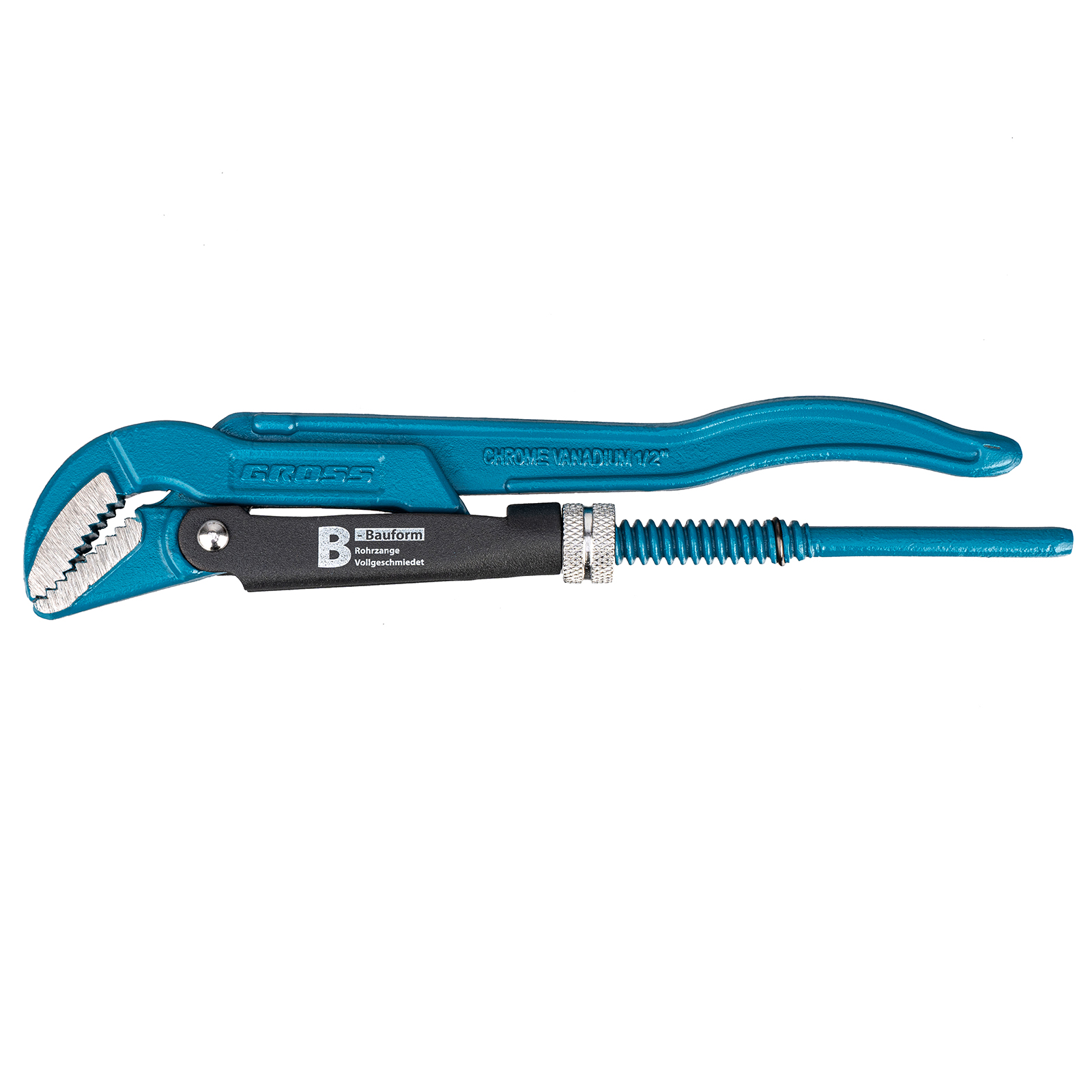 - Высокая прочность — цельнокованый корпус изготовлен из хромованадиевой стали, а губки закалены до твердости 57-60 HRC.