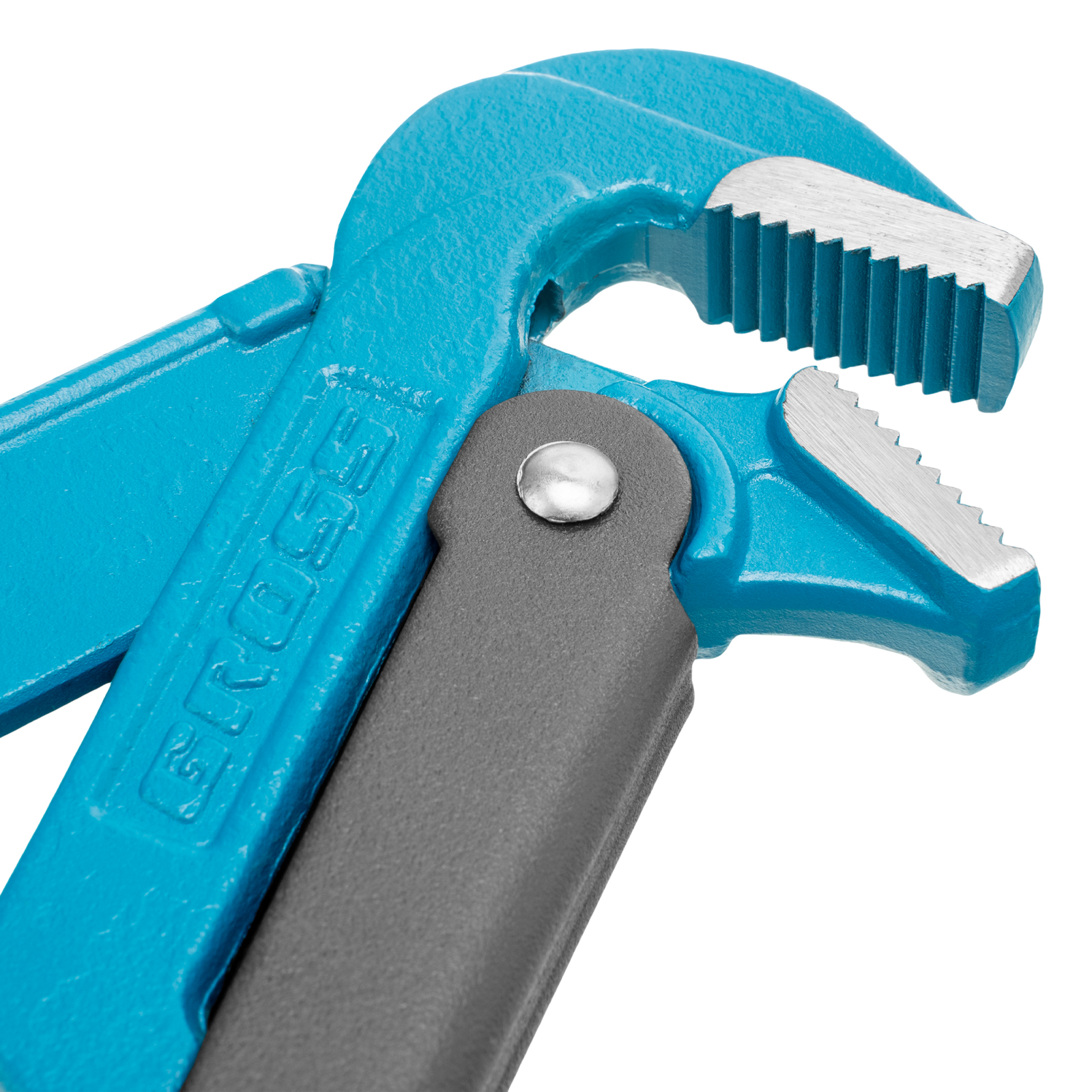 - Самоблокируемый захват труб и деталей — зубья прогрессивной формы наклонены против направления вращения.