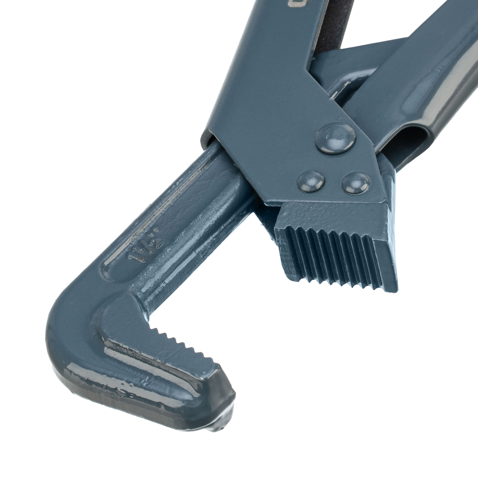 - Прочность и долговечность — кованая конструкция из закаленной легированной стали обеспечивает высокий рабочий ресурс, губки закалены до твердости 48-52 HRC.