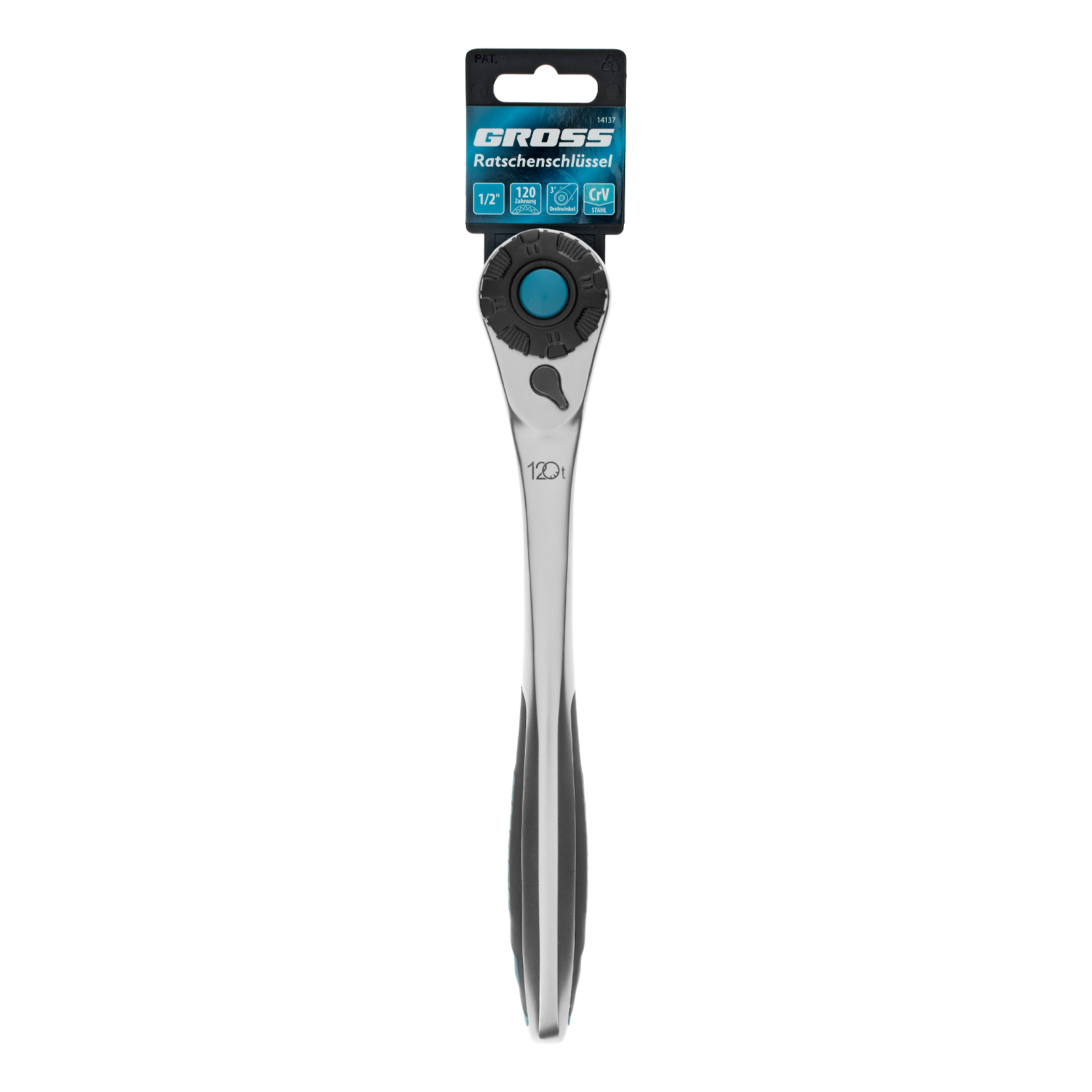 Ключ-трещотка 1/2", CrV, 120 зубьев, с быстрым сбросом, цельнометаллический, хром Gross в Челябинске