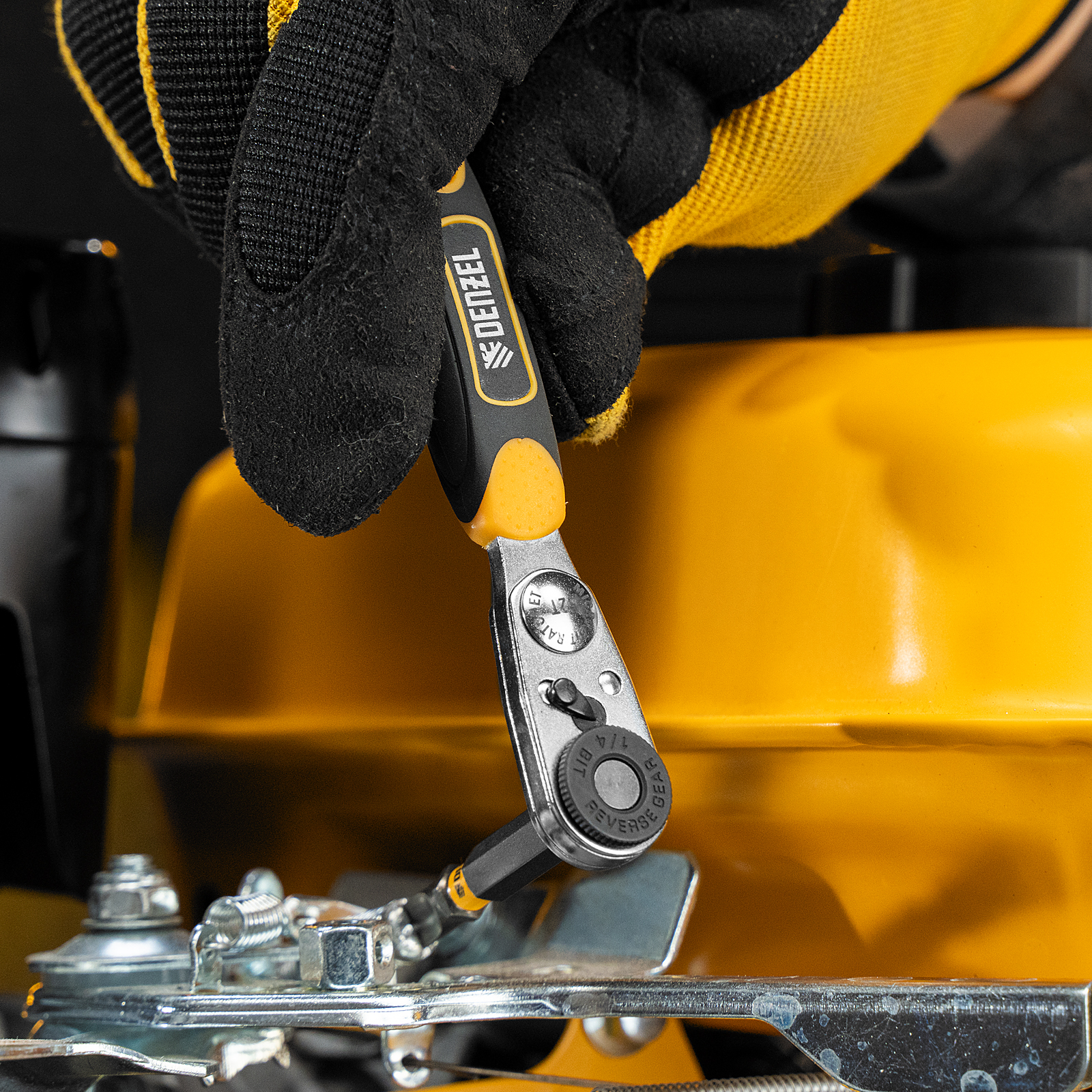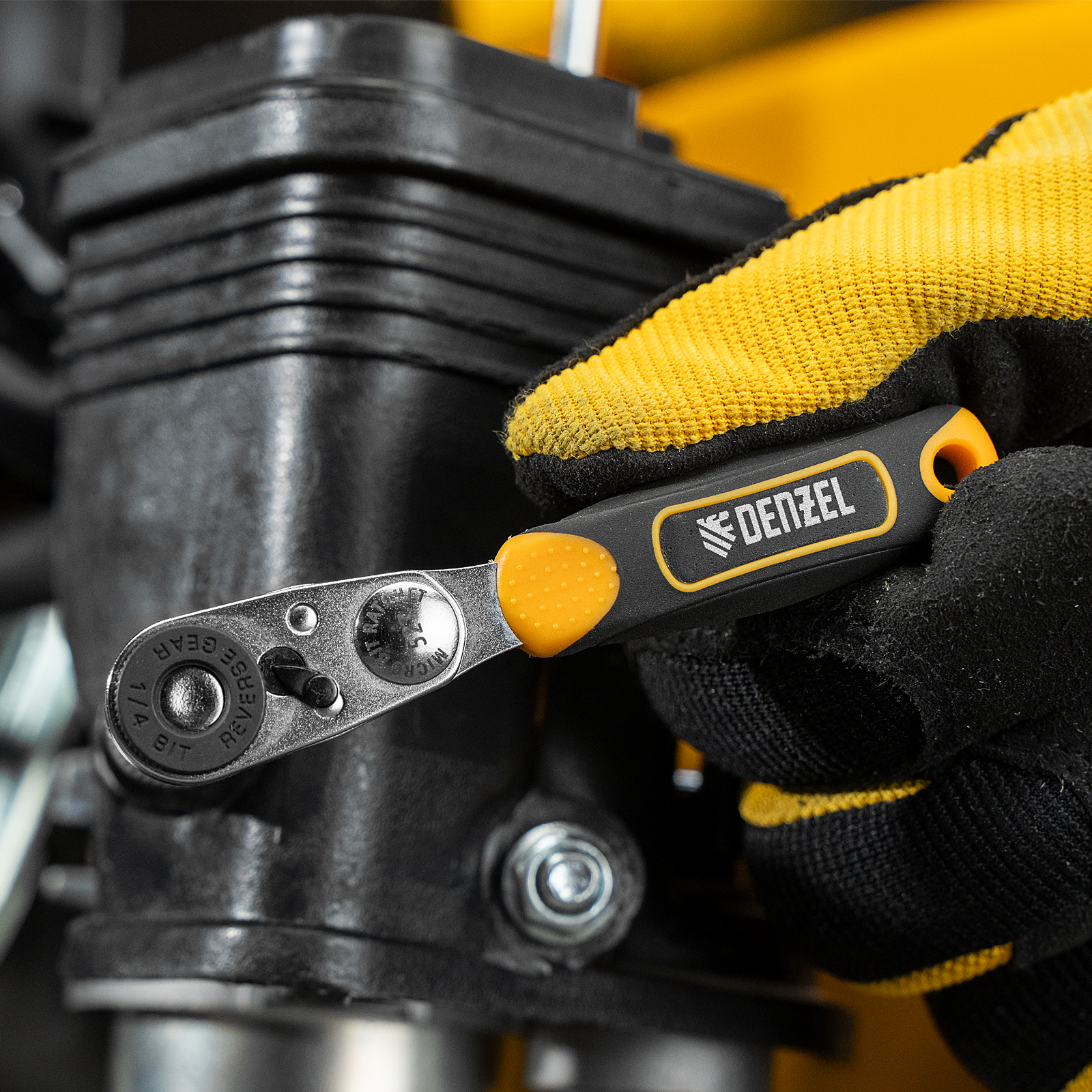 Ключ-трещотка для бит 1/4", 52 зуба, CrMo, адаптер для торцевых головок Denzel в Челябинске