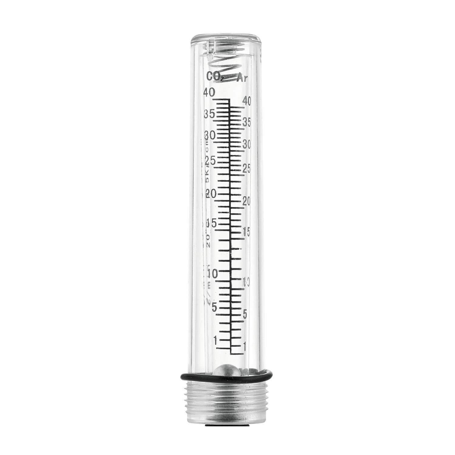 Колба выполнена из прозрачного пластика,  по нижнему краю расположена резьба М22х1,5 для подсоединения к регулятору расхода газа. Внутри наружной пластиковой колбы, размещена малая пластиковая колба для шарика-поплавка. На ней нанесена двойная шкала расхода газов Ar/CO₂, которая показывает расход каждого из них (л/мин).