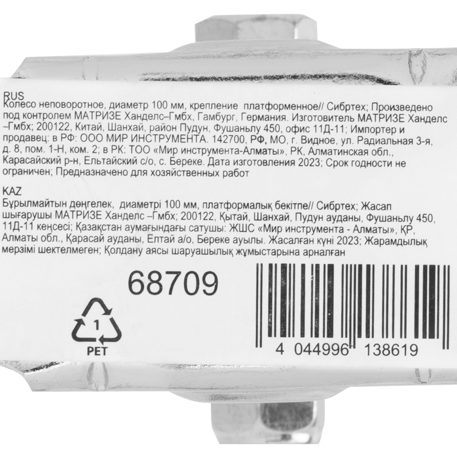 Колесо неповоротное D 100 мм, крепление платформенное Сибртех в Челябинске
