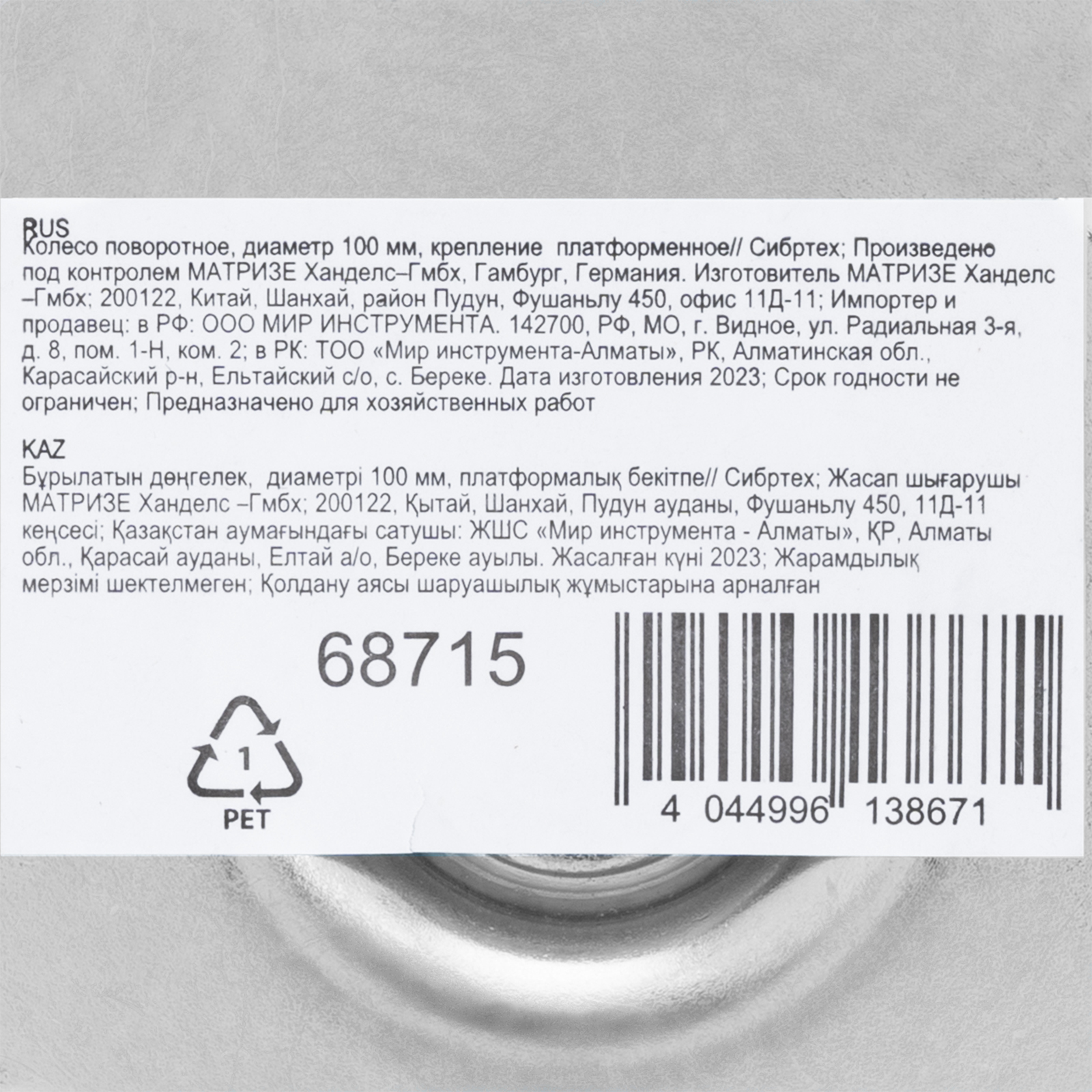 Колесо поворотное D 100 мм, крепление платформенное Сибртех в Челябинске