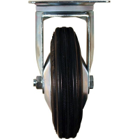 Опора колеса производится из оцинкованных стальных листов. Все колеса комплектуются стальными колпачками (чашками), которые защищают обод с двух сторон. В оси колес находится игольчатый подшипник. Опора колеса имеет платформу крепления с отверстиями для четырех болтов и упорный шариковый подшипник, который обеспечивает ее поворот.