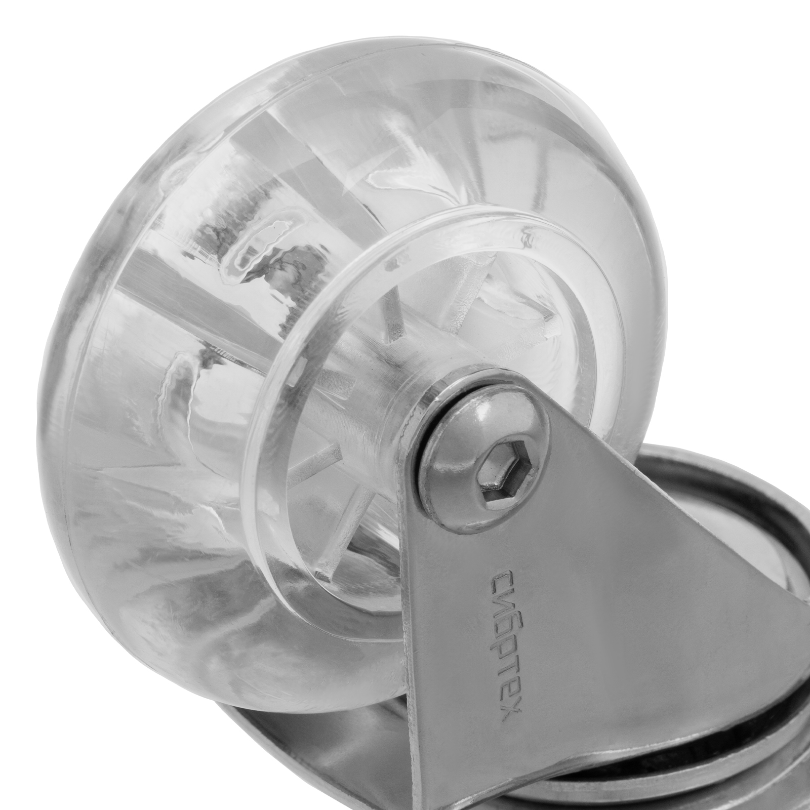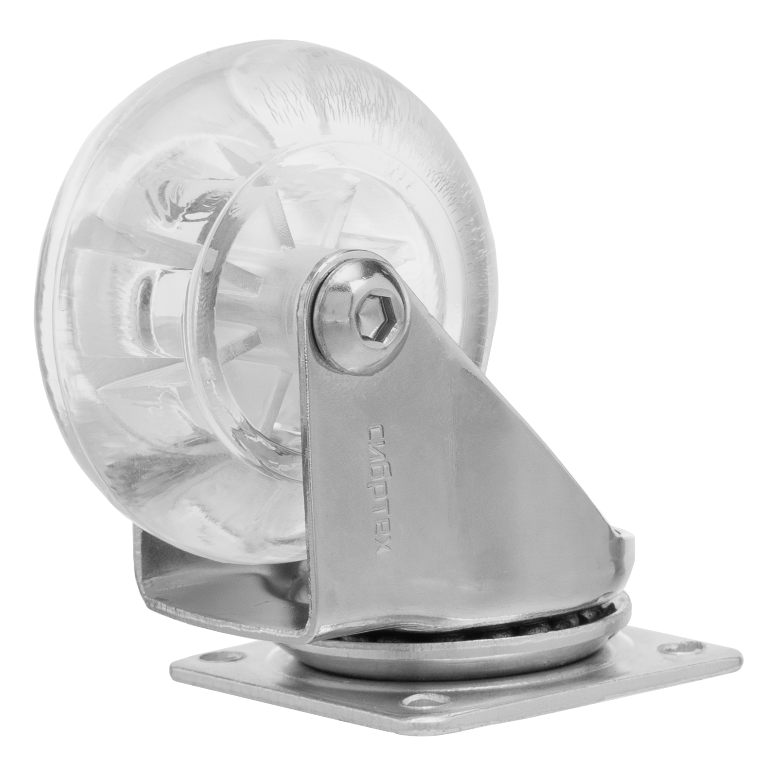 Колесо ПУ прозрачное поворотное d-50 мм, крепление платформенное Сибртех в Челябинске