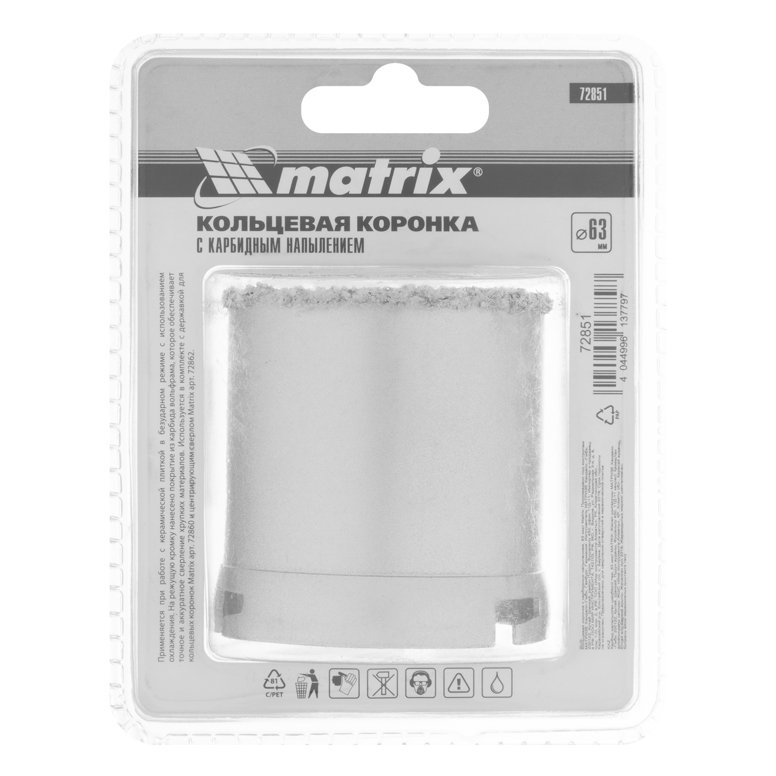 Кольцевая коронка с карбидным напылением, 63 мм Matrix в Челябинске