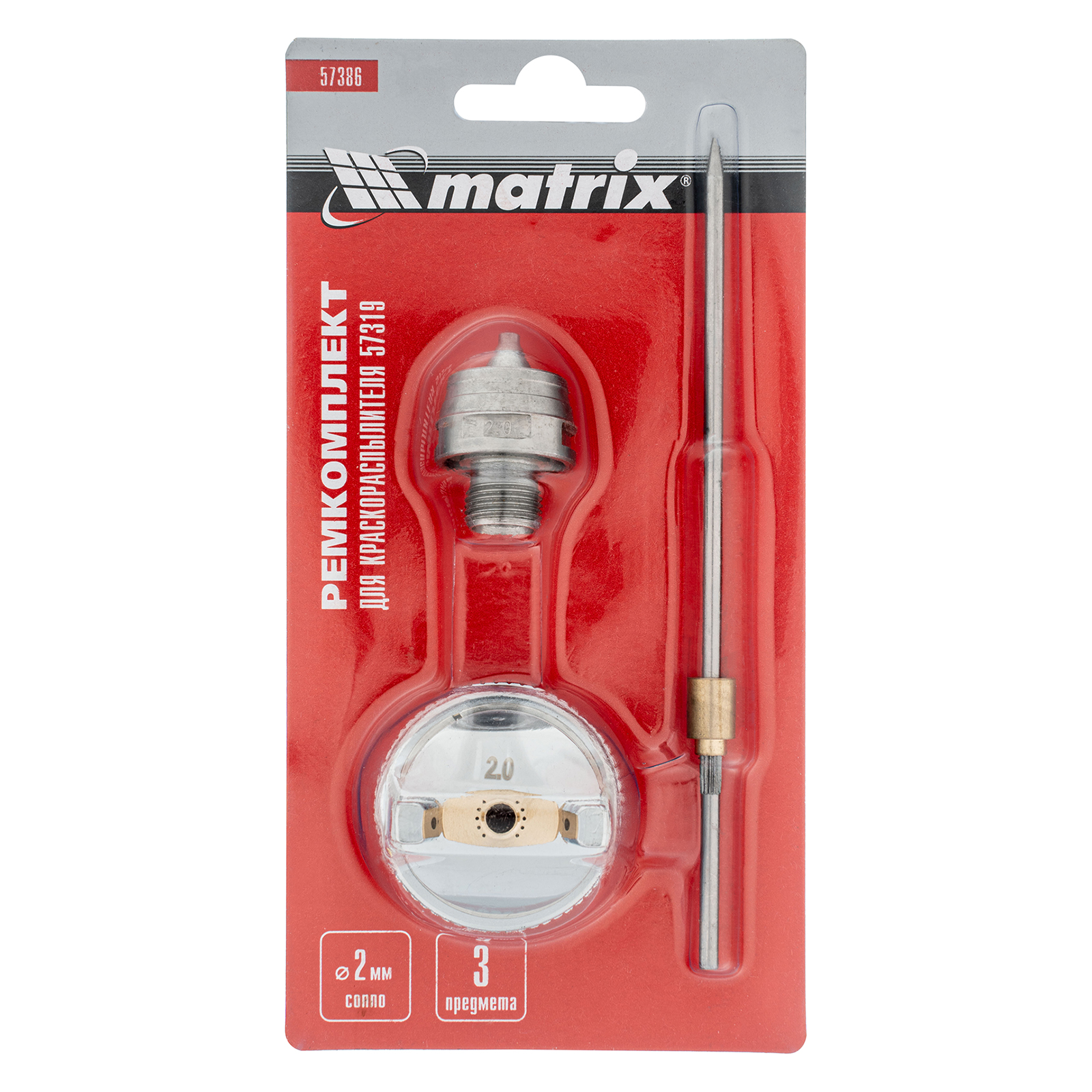 Комплект Matrix 57386 для краскораспылителя Matrix 57319 включает в себя 3 предмета: сопло диаметром 2 мм, иглу и форсунку. Их можно использовать для ремонта инструмента или расширения его функциональных возможностей.