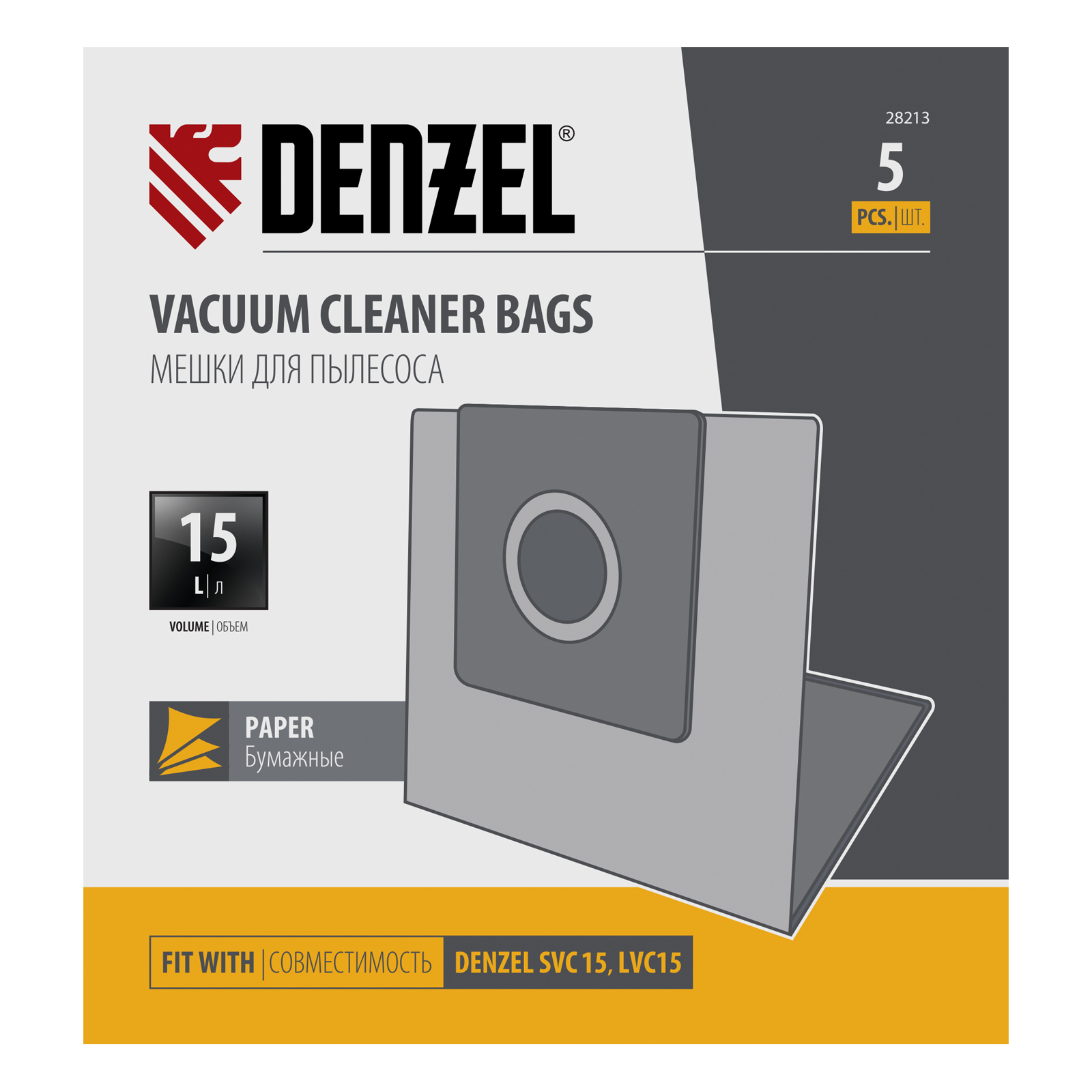 Комплект мешков одноразовых для пылесоса Denzel SVC15, LVC15 5 шт. Denzel в Челябинске